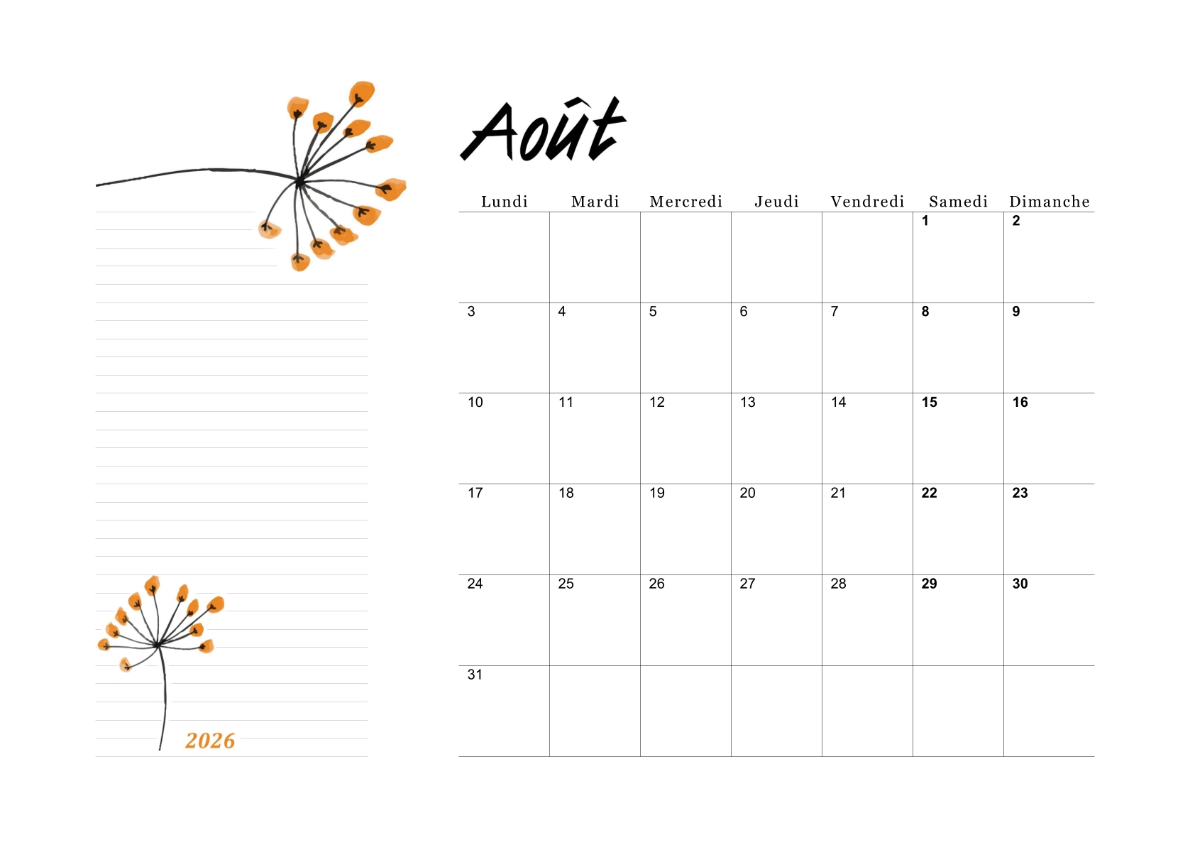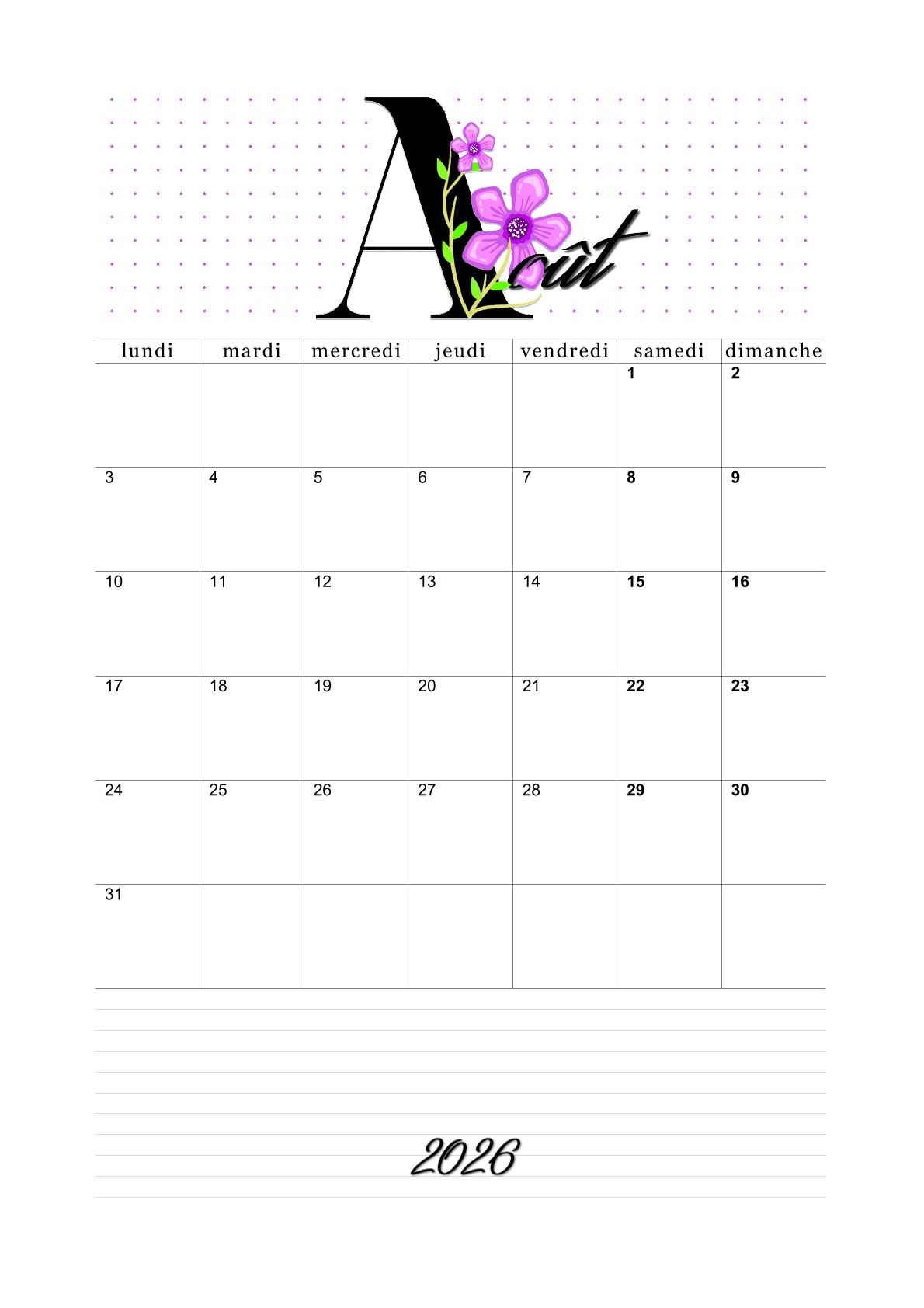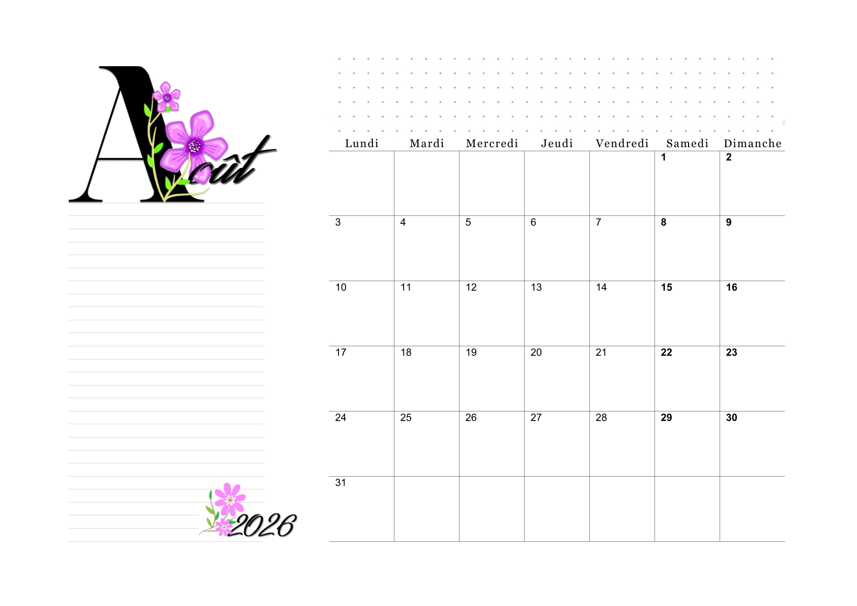 Les calendriers du mois d'août 2026 vous ont plu.