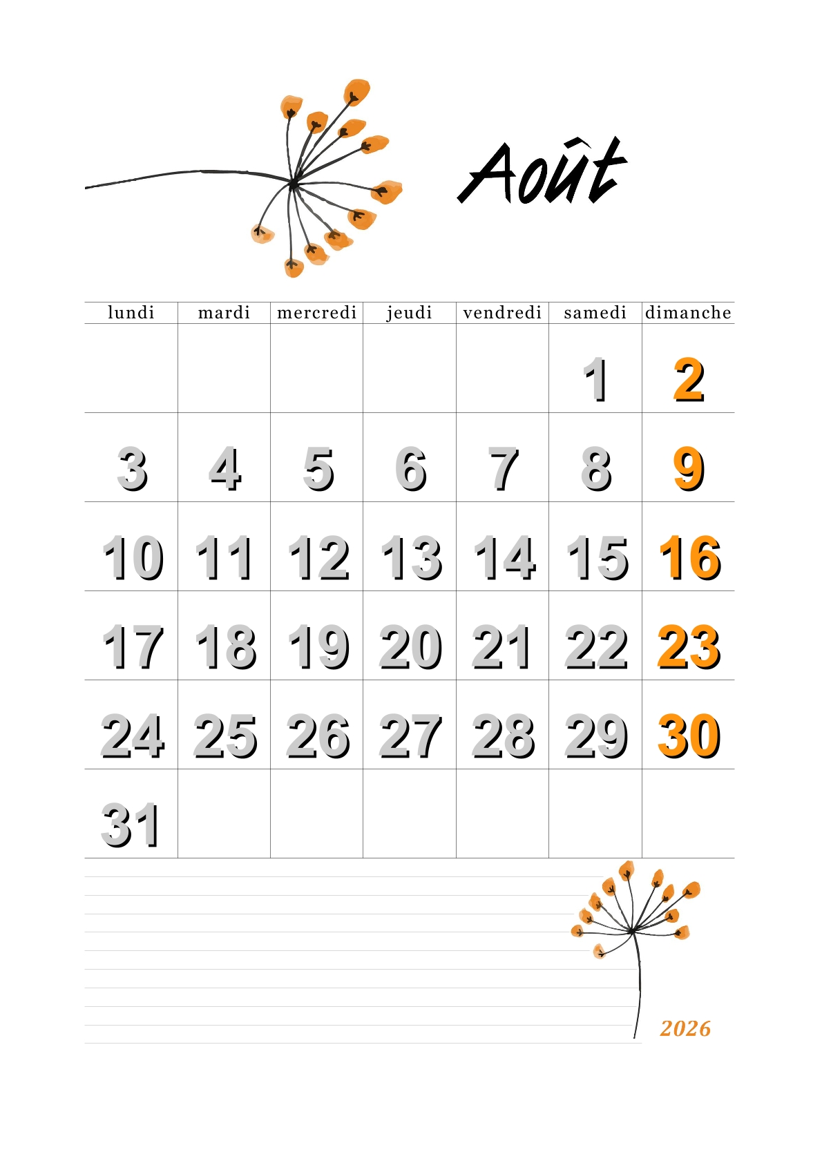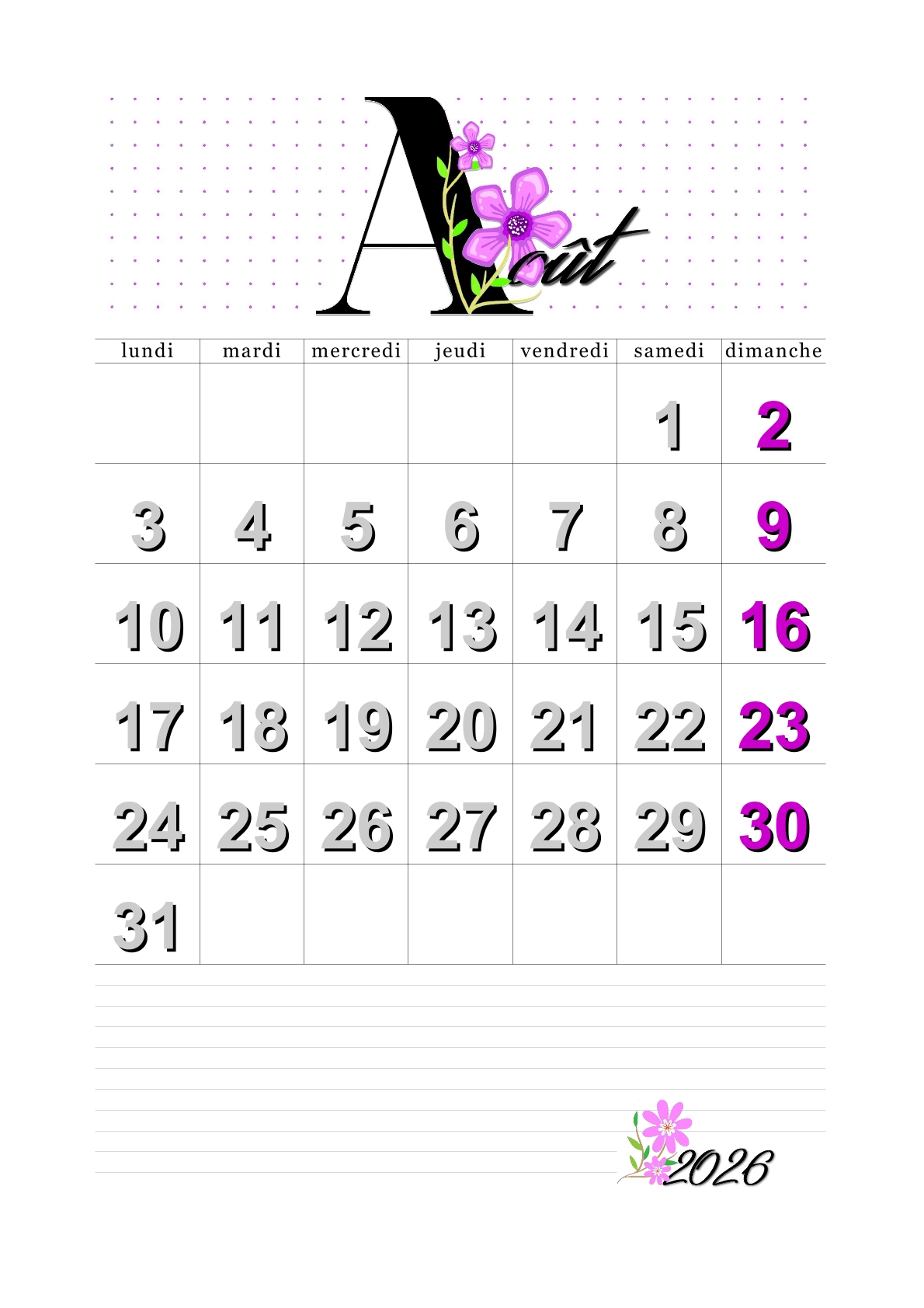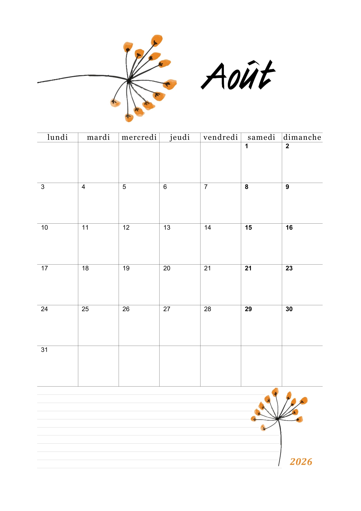 Les calendriers du mois d'août 2026 vous ont plu.