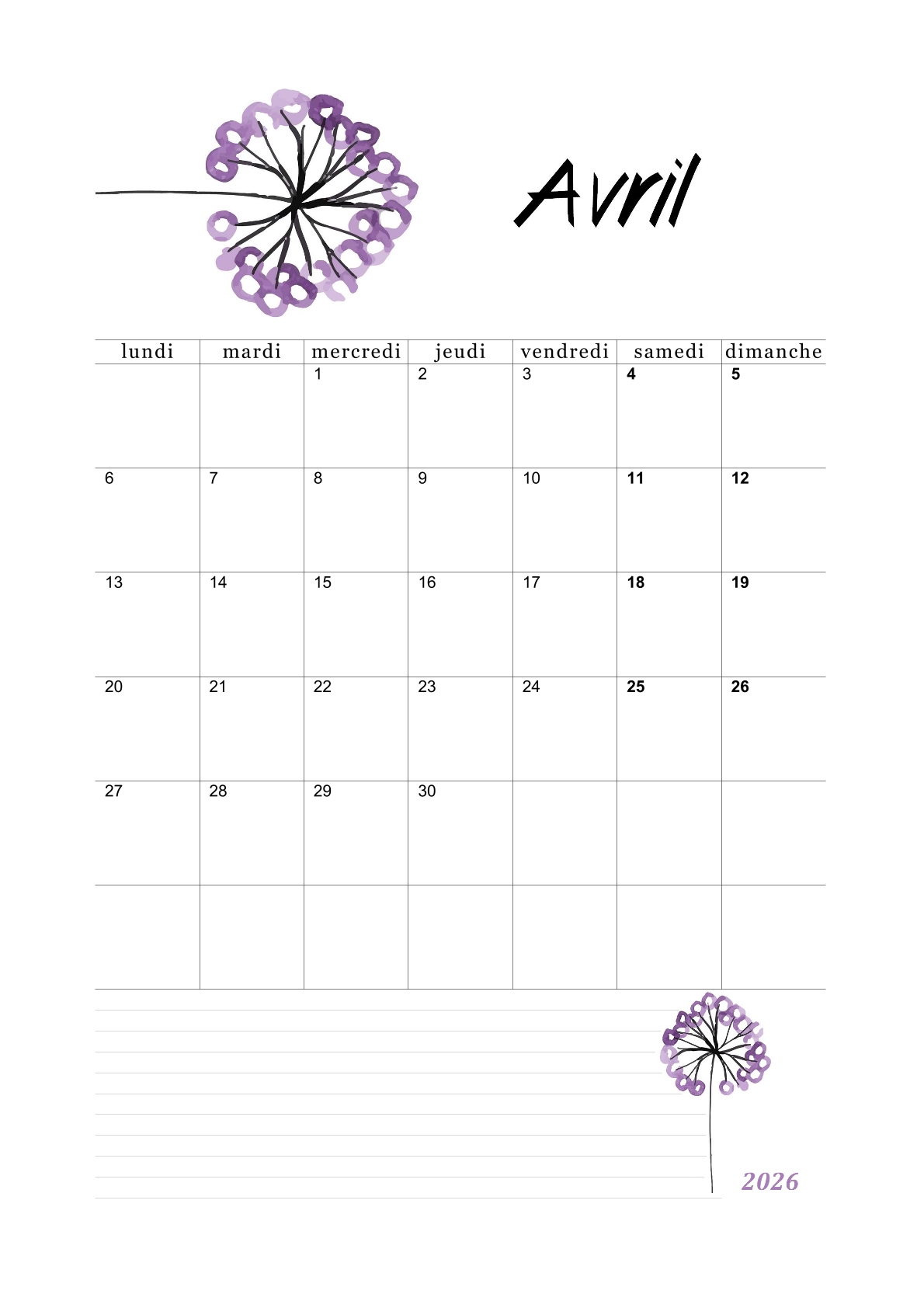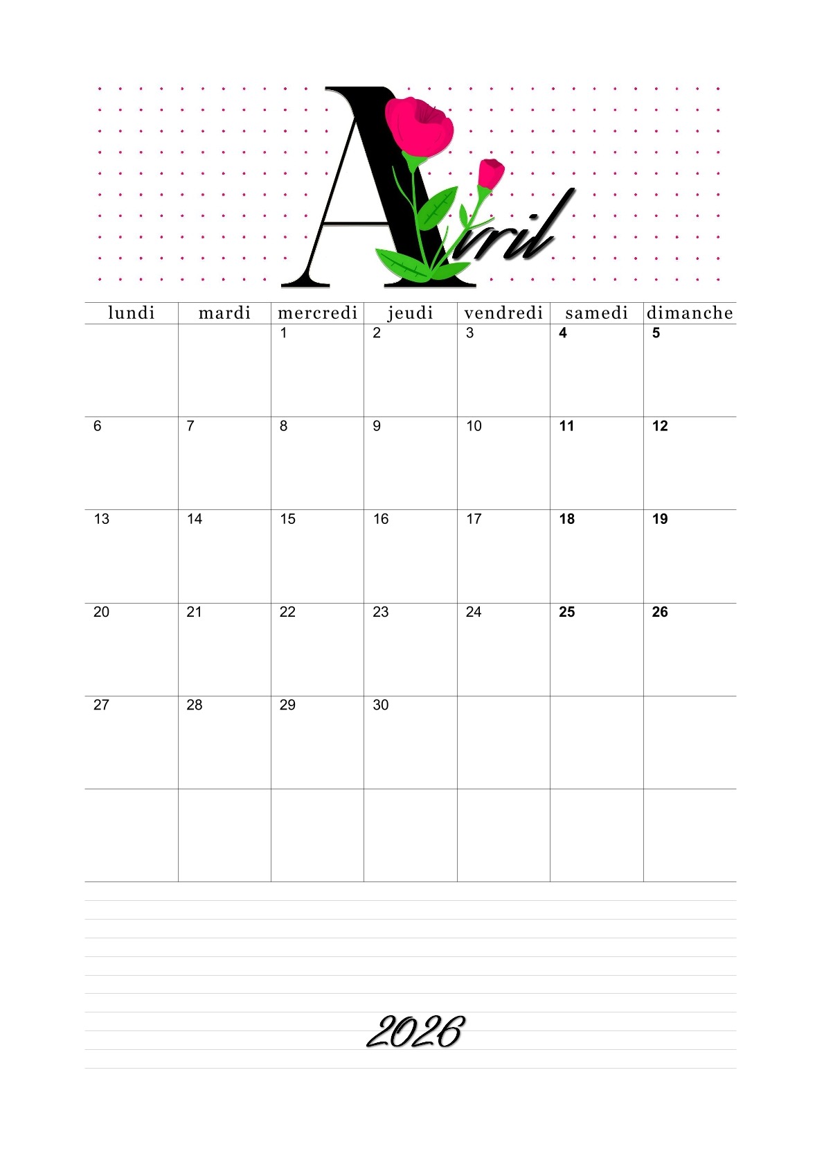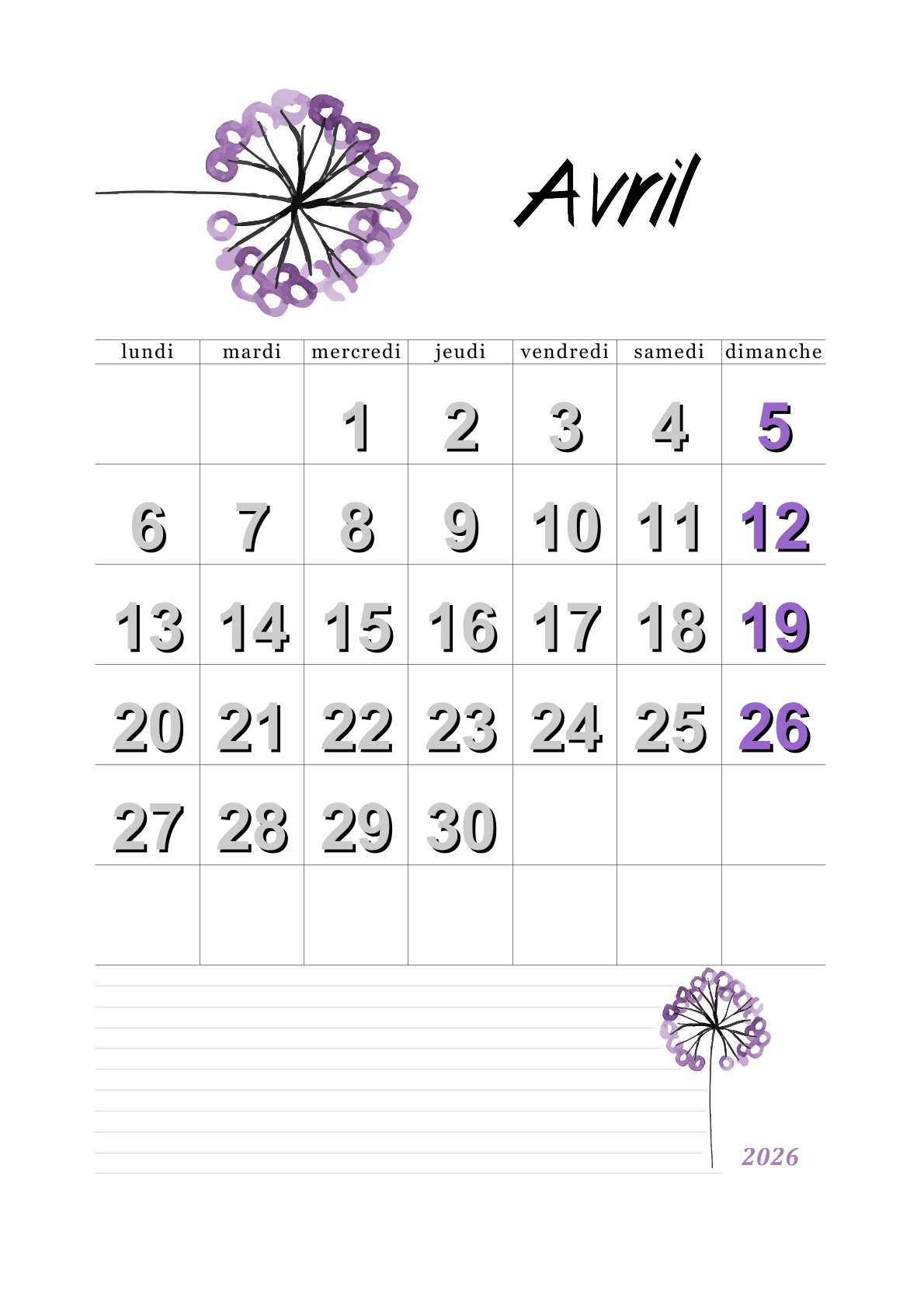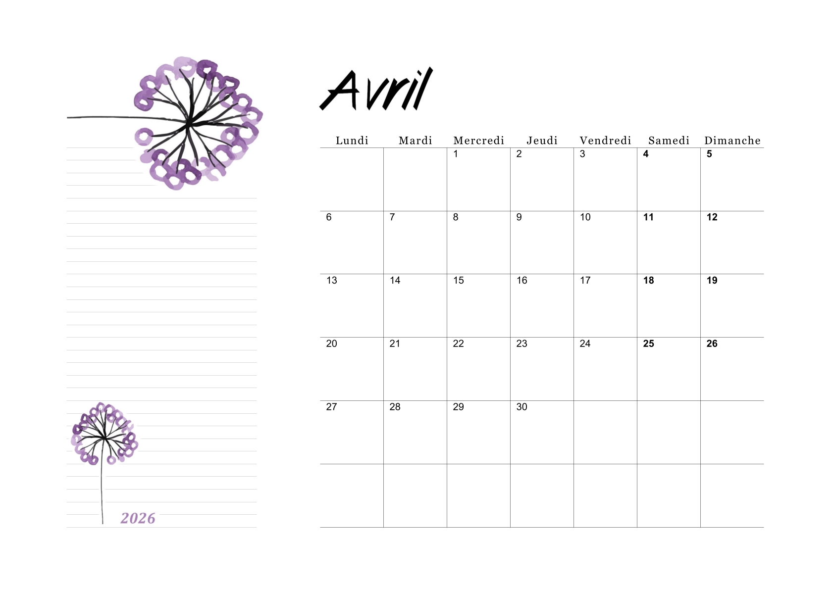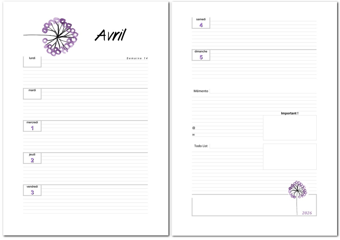 Les calendriers du mois d'avril 2026 vous ont plu.