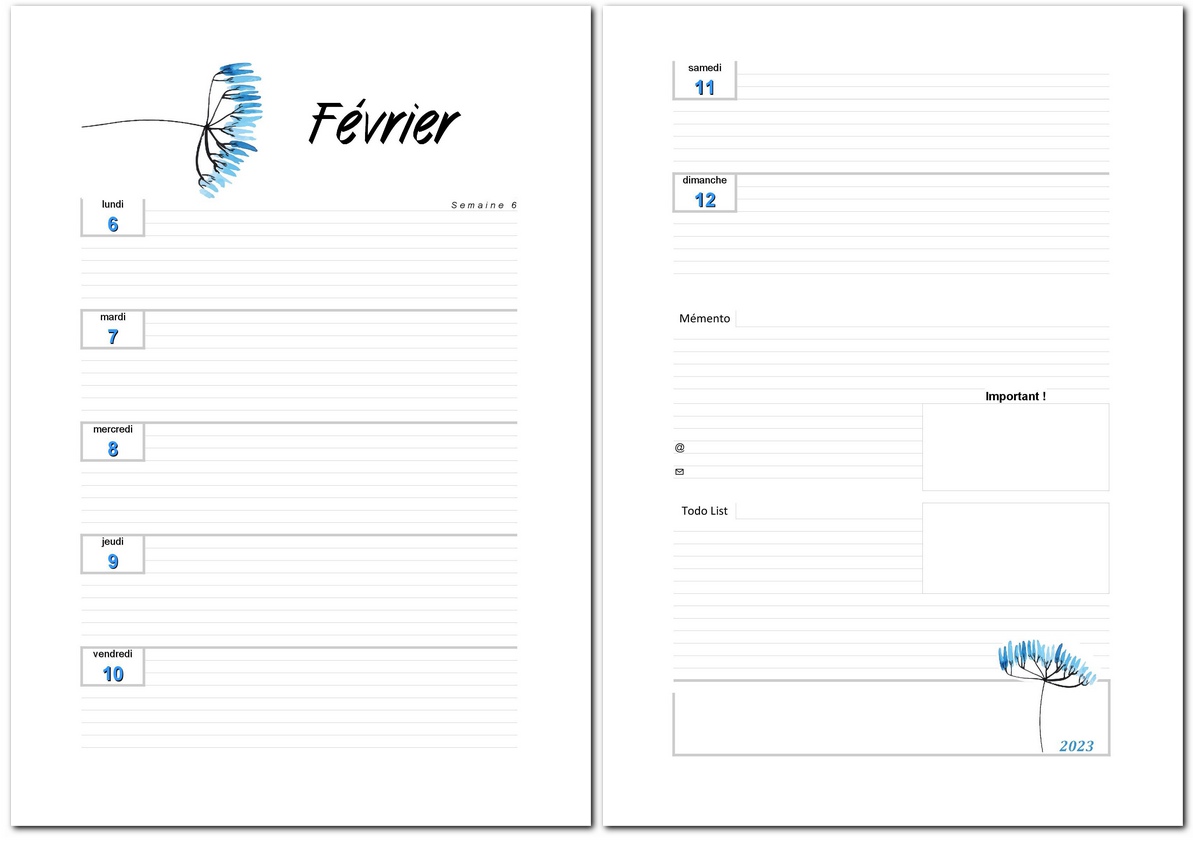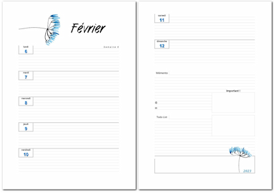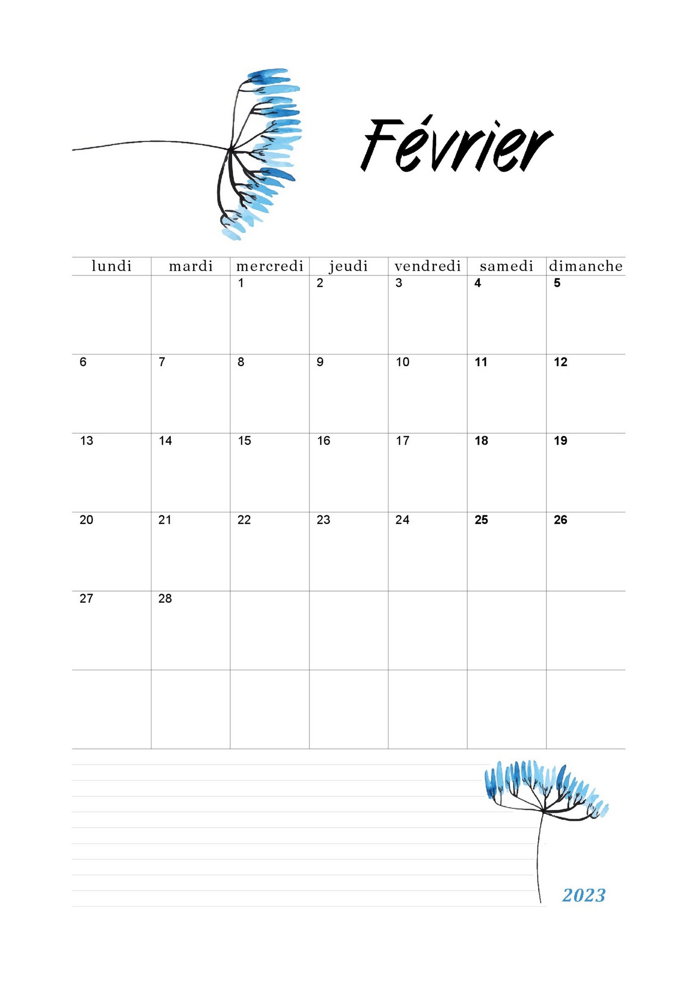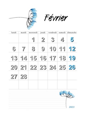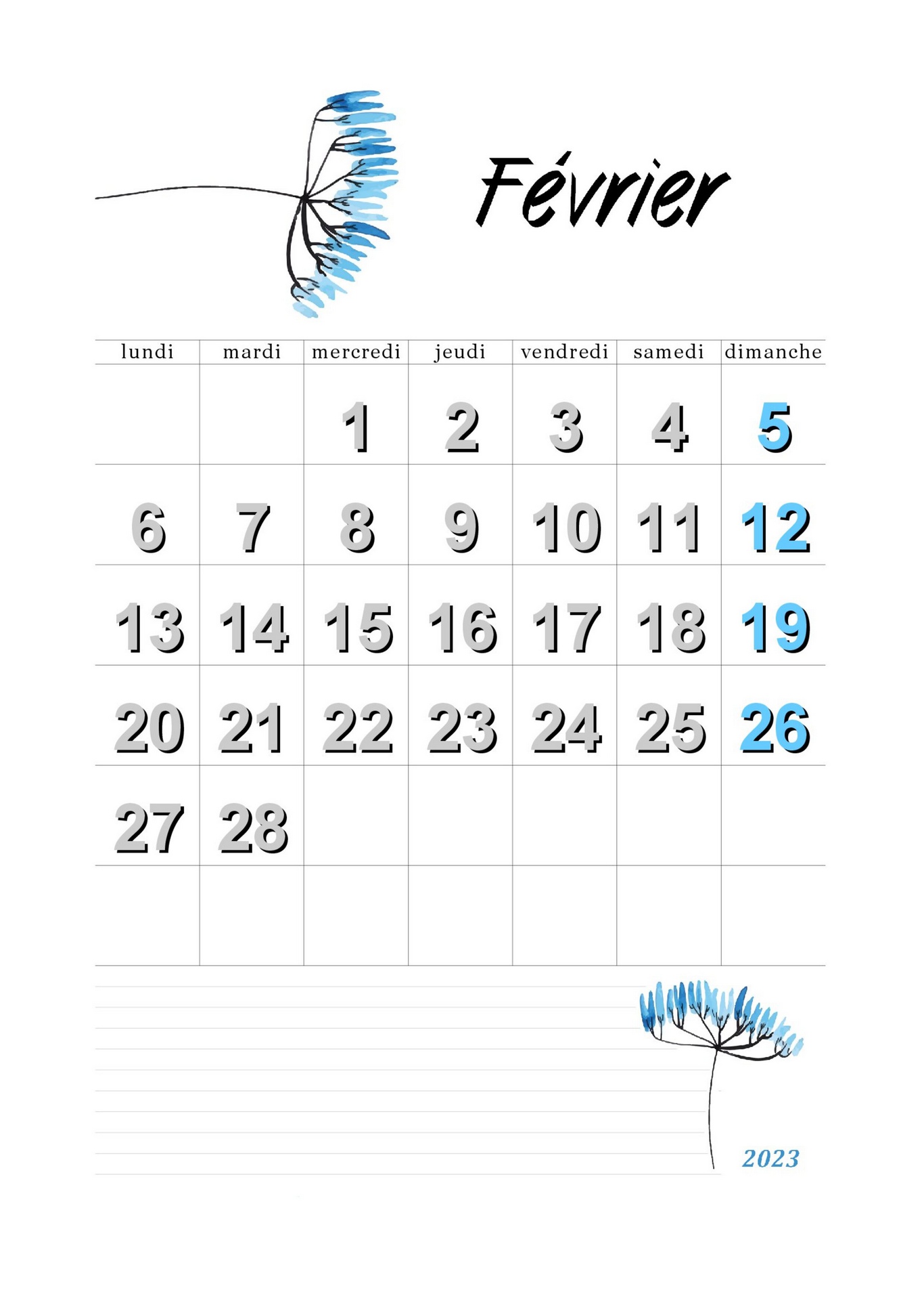 5. Calendrier du mois de février 2025 au format paysage A4.