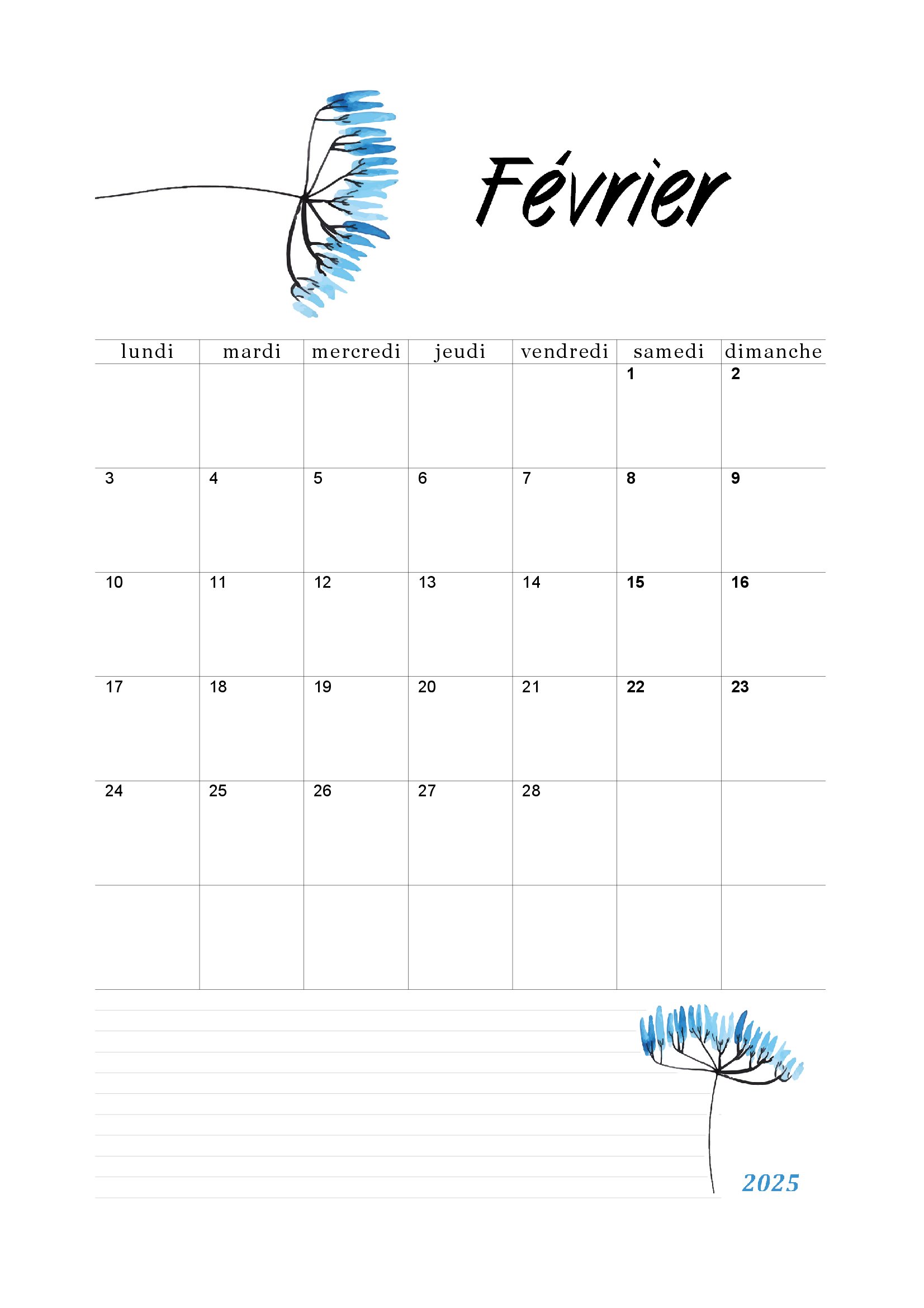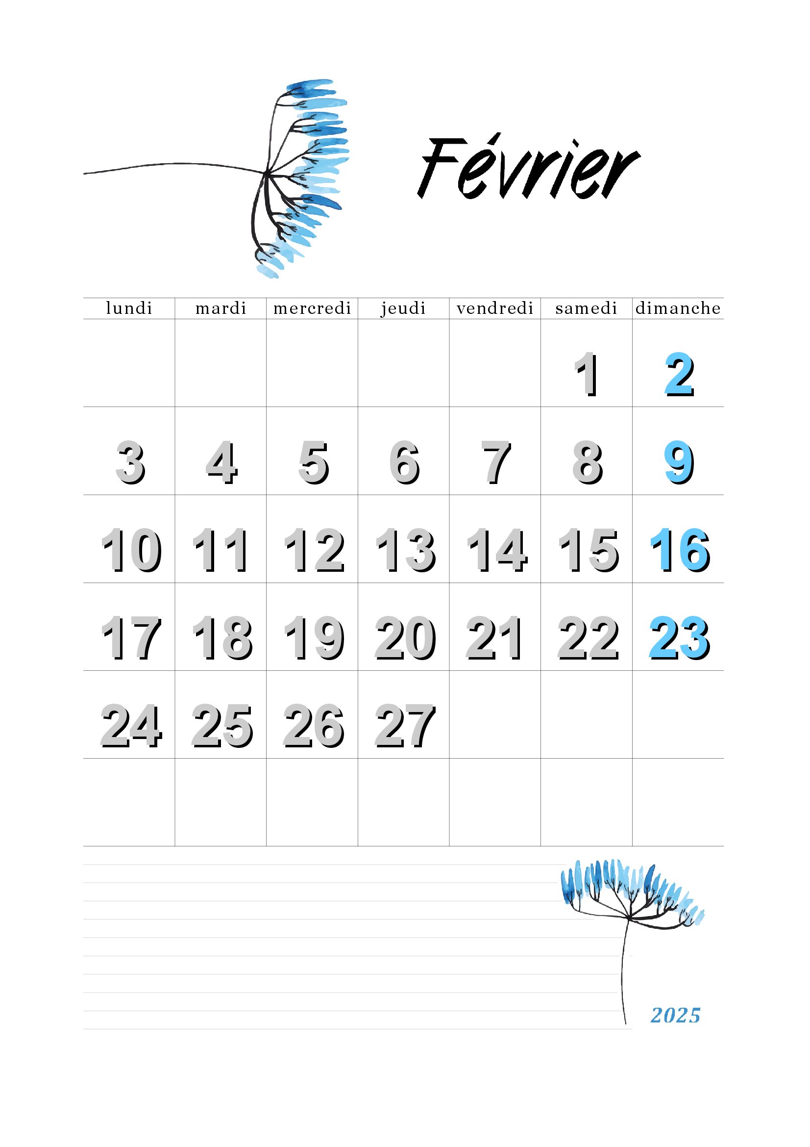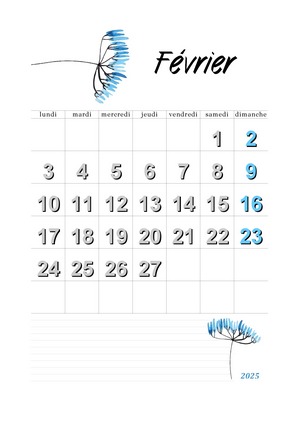 2. Calendrier du mois de février 2025 au format portrait A4.