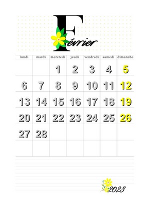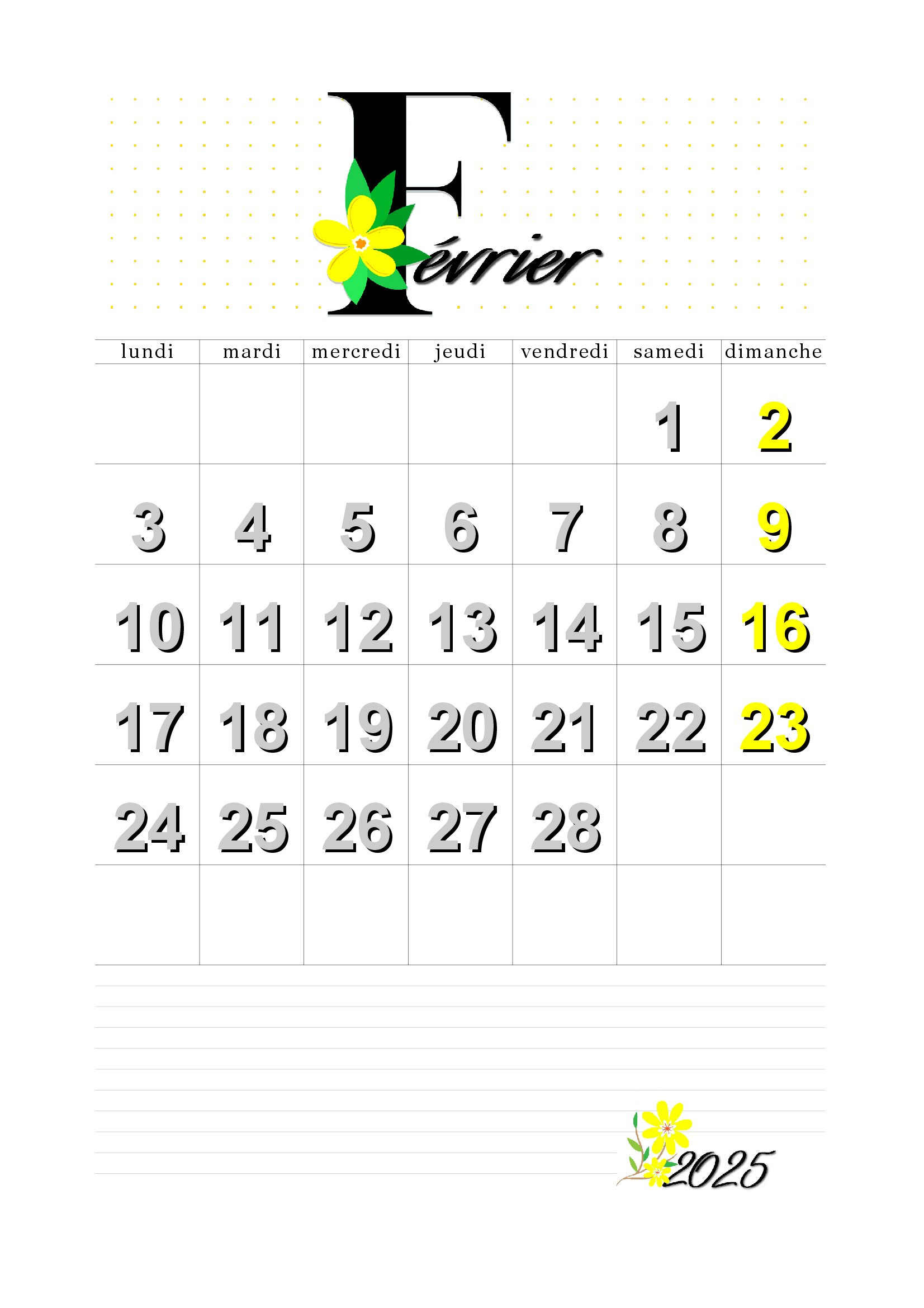 4. Calendrier du mois de février 2025 au format A4 portrait.