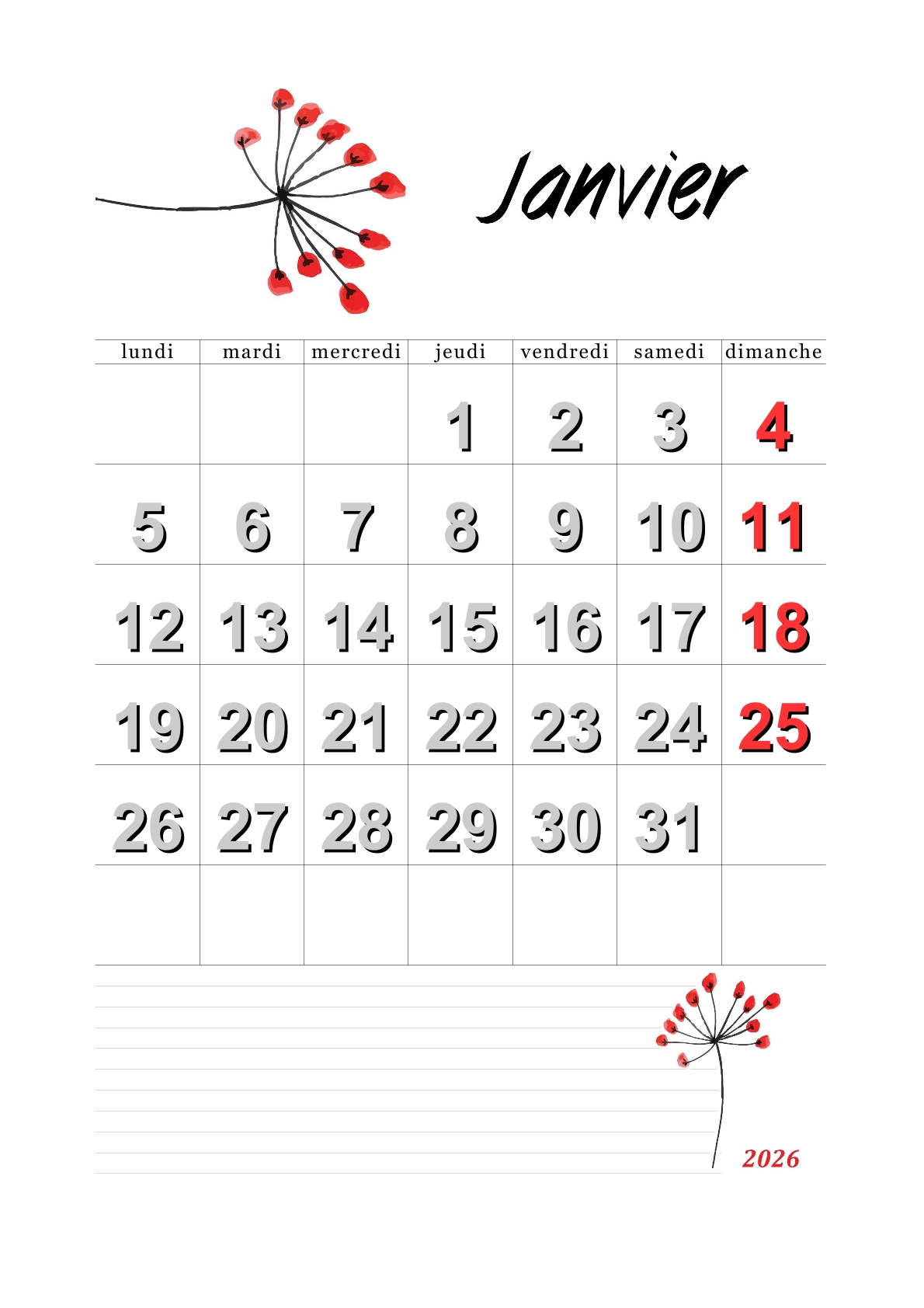 Les calendriers du mois de janvier 2026 vous ont plu.