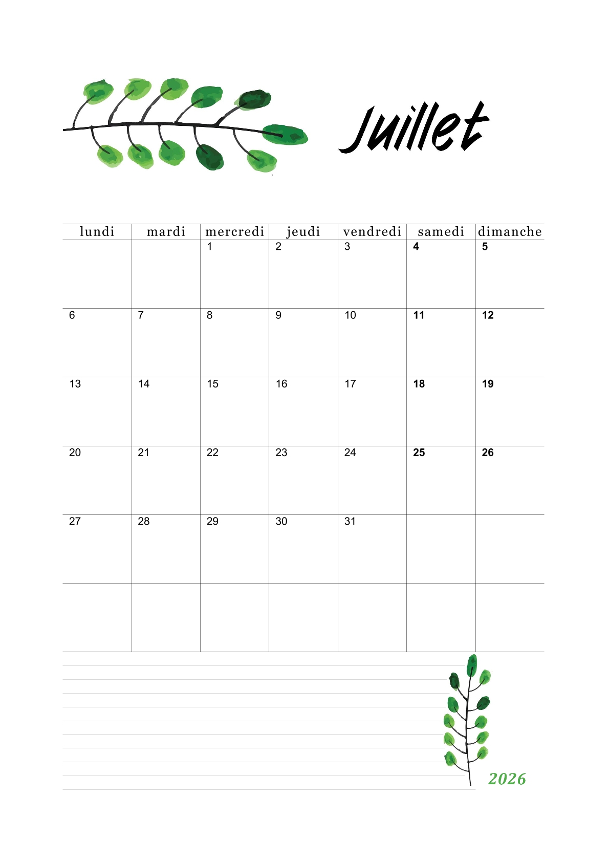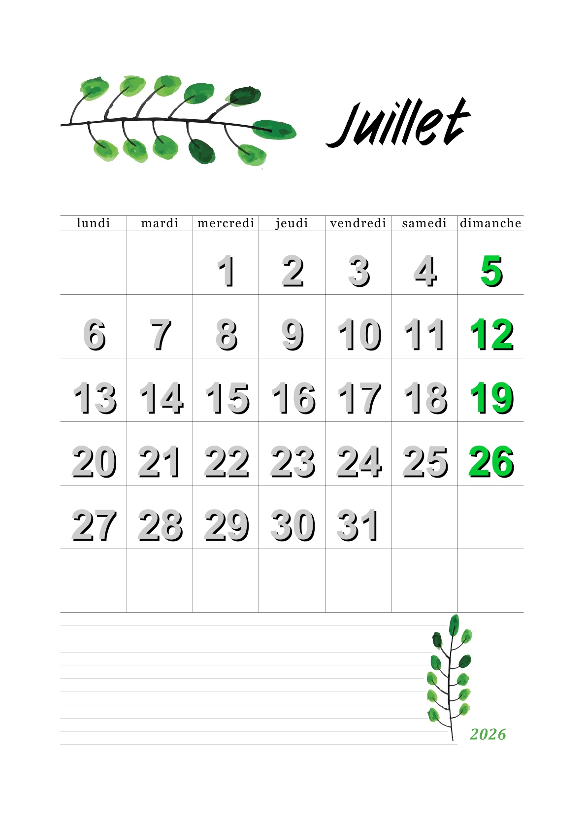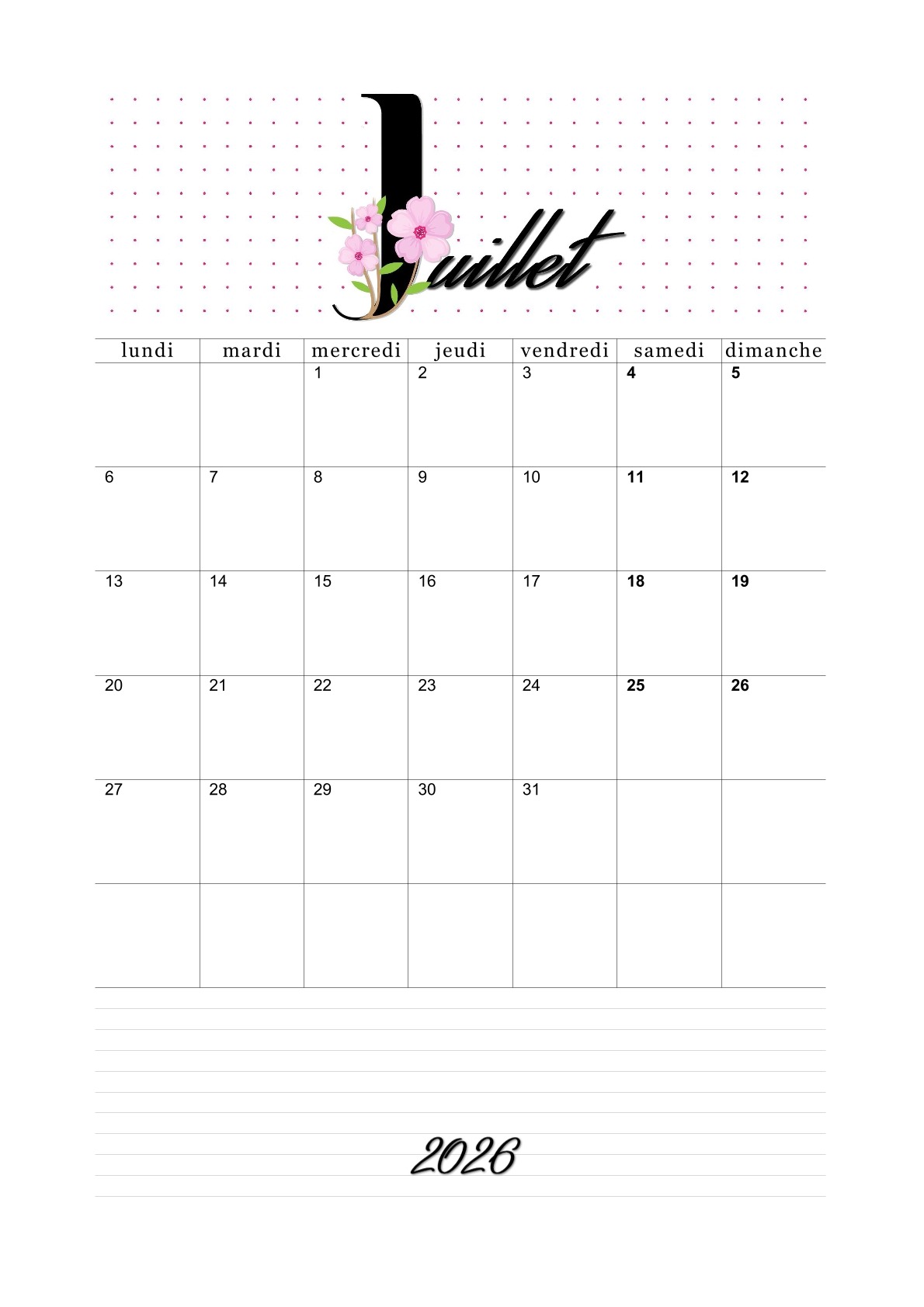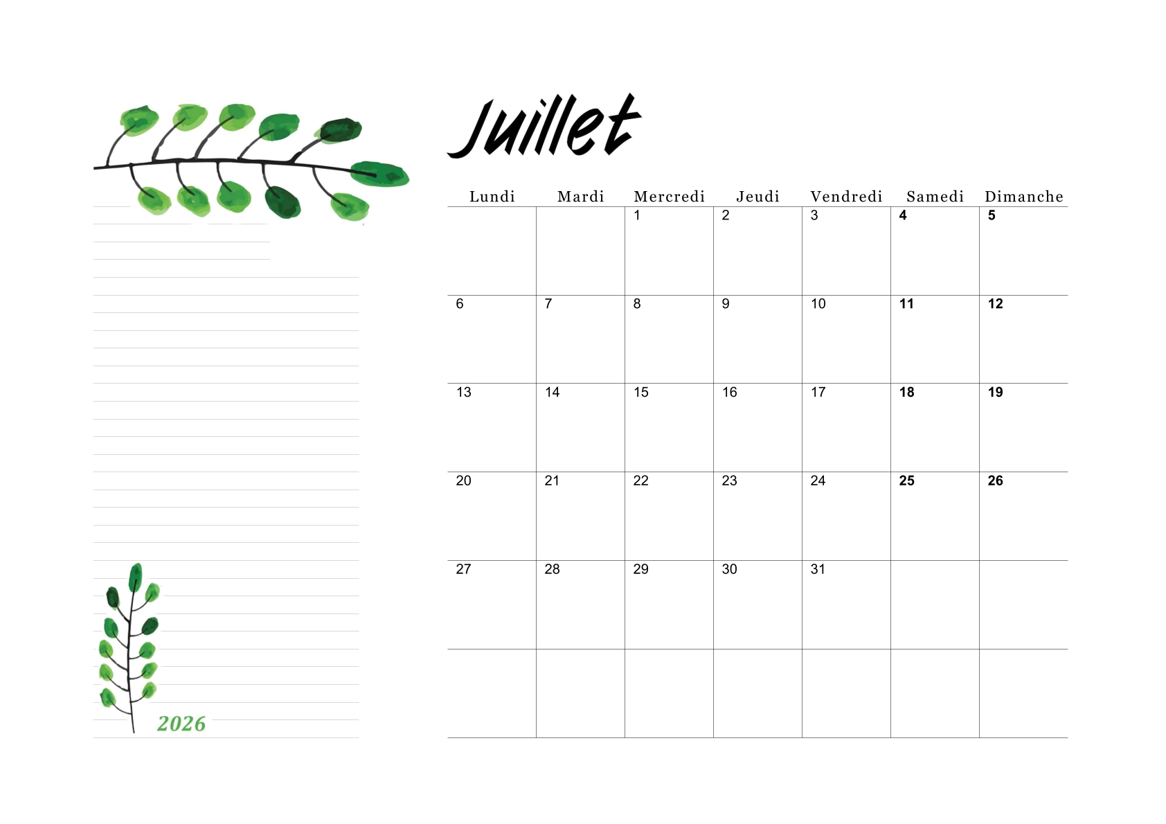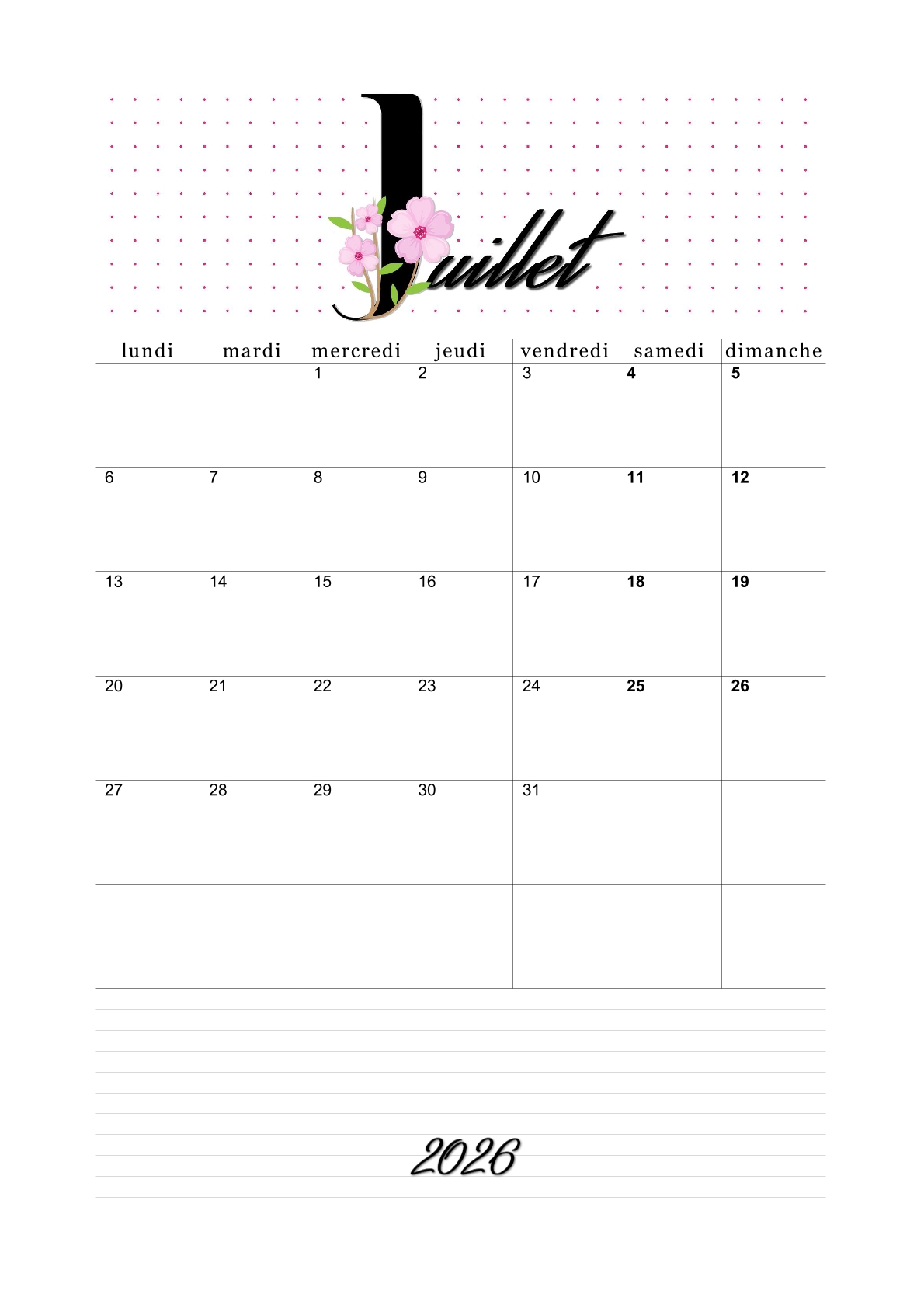 Les calendriers du mois de juillet 2026 vous ont plu.