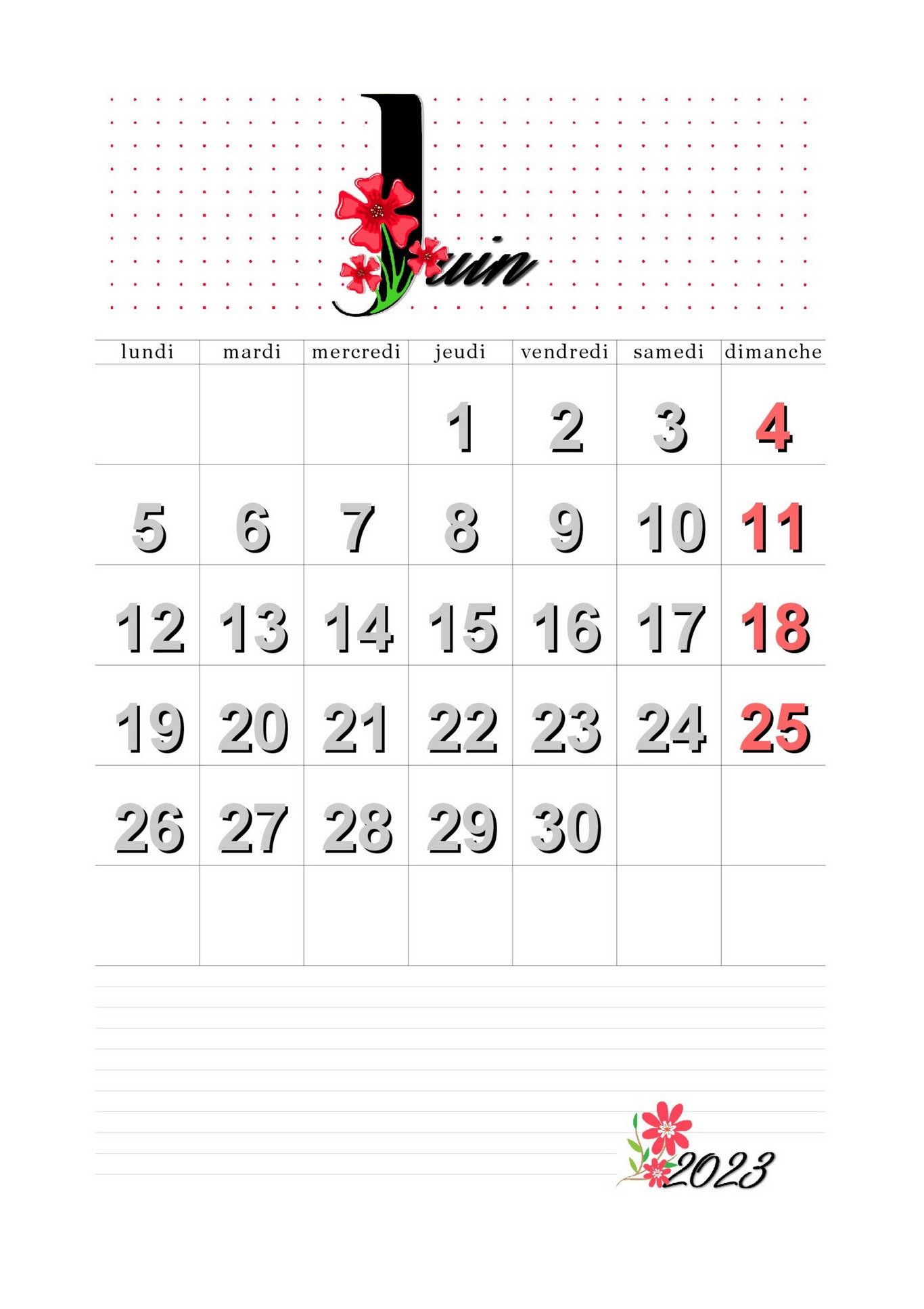 Calendriers pour le mois juin 2025 à imprimer gratuitement au format PDF A4 (format portrait et paysage) !