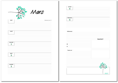 6. Calendrier de mars 2025 au format paysage A4.