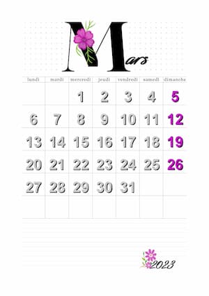 Les calendriers du mois de mars 2025 vous ont plu.