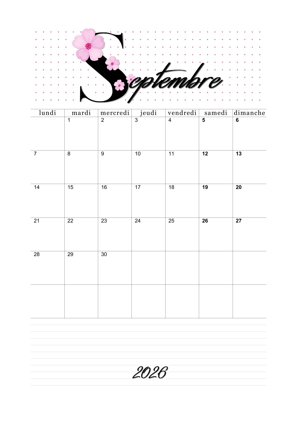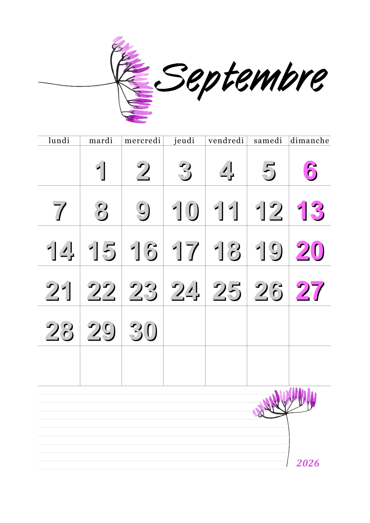 Les calendriers du mois de septembre 2026 vous ont plu.