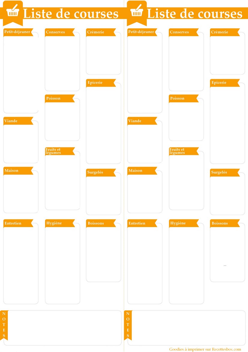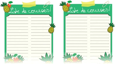 Cette liste de courses est vierge, modifiable et imprimable sur une page A4 en mode horizontal / paysage. Elle est à découper, puisque c'est une liste en double.