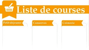Voici un style de liste d'épicerie à mettre sur votre frigo qui vous est proposé par le site mangerbouger.fr. Nous sommes désolés, mais nous n'avons plus le lien original pour le télécharger directement sur le site.