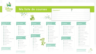 Le site baby.disney.fr vous invite à imprimer sa liste de courses idéale toute prête qui fait partie de la boîte à outils des mamans.