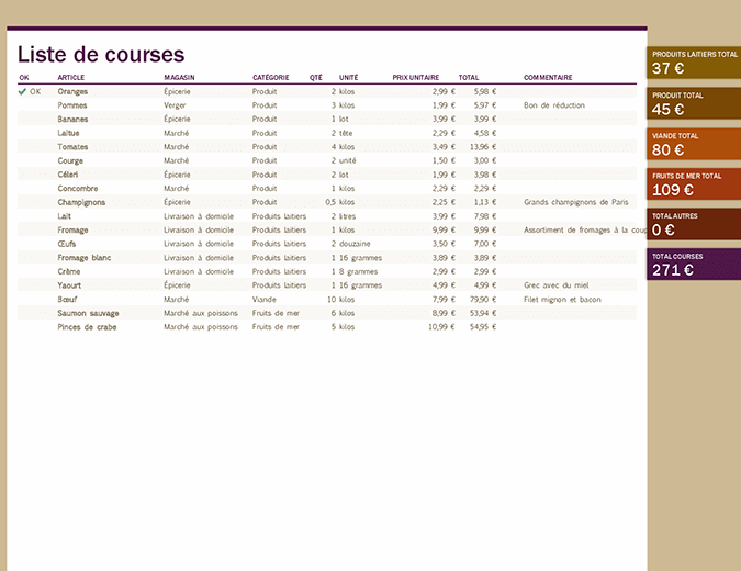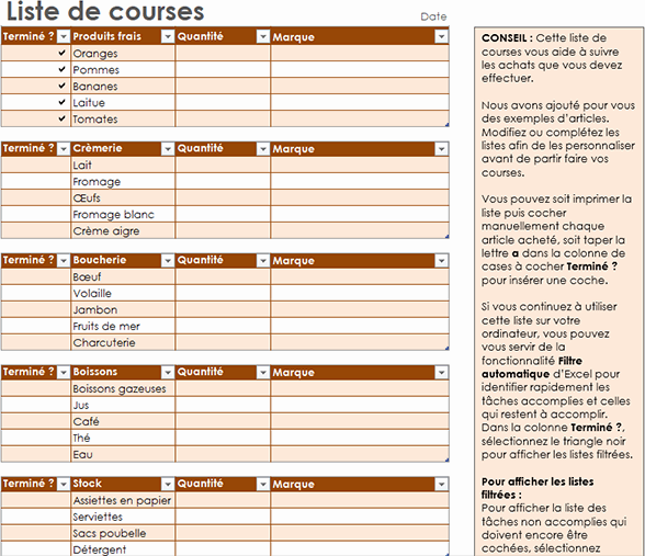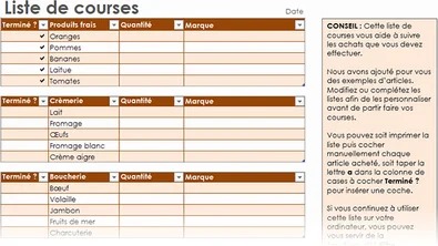 Bien que l'original soit en anglais, vous pouvez le modifier pour le mettre en français. Vous pouvez entrer votre liste de courses directement dans le PDF puisqu'elle est modifiable et ajouter une coche devant chaque article.