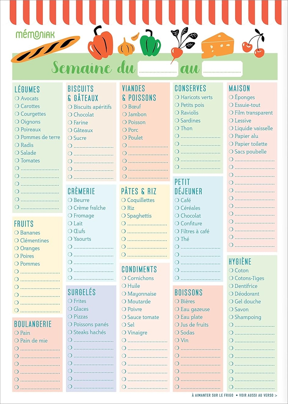 « ... organiser votre emploi du temps de la semaine jour après jour, lister vos courses, les repas prévus pour la semaine ... »