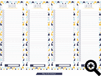 Sont inclus, des cases déjeuner, goûter, dîner et une case pour la liste de courses. Plus des cases sous forment de "post-it" jaune pour prendre des notes.