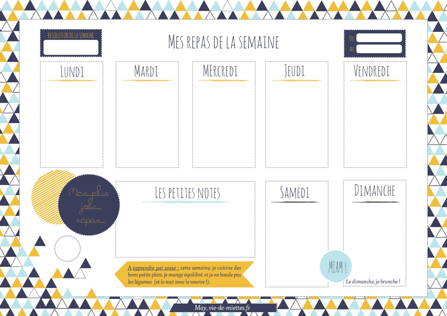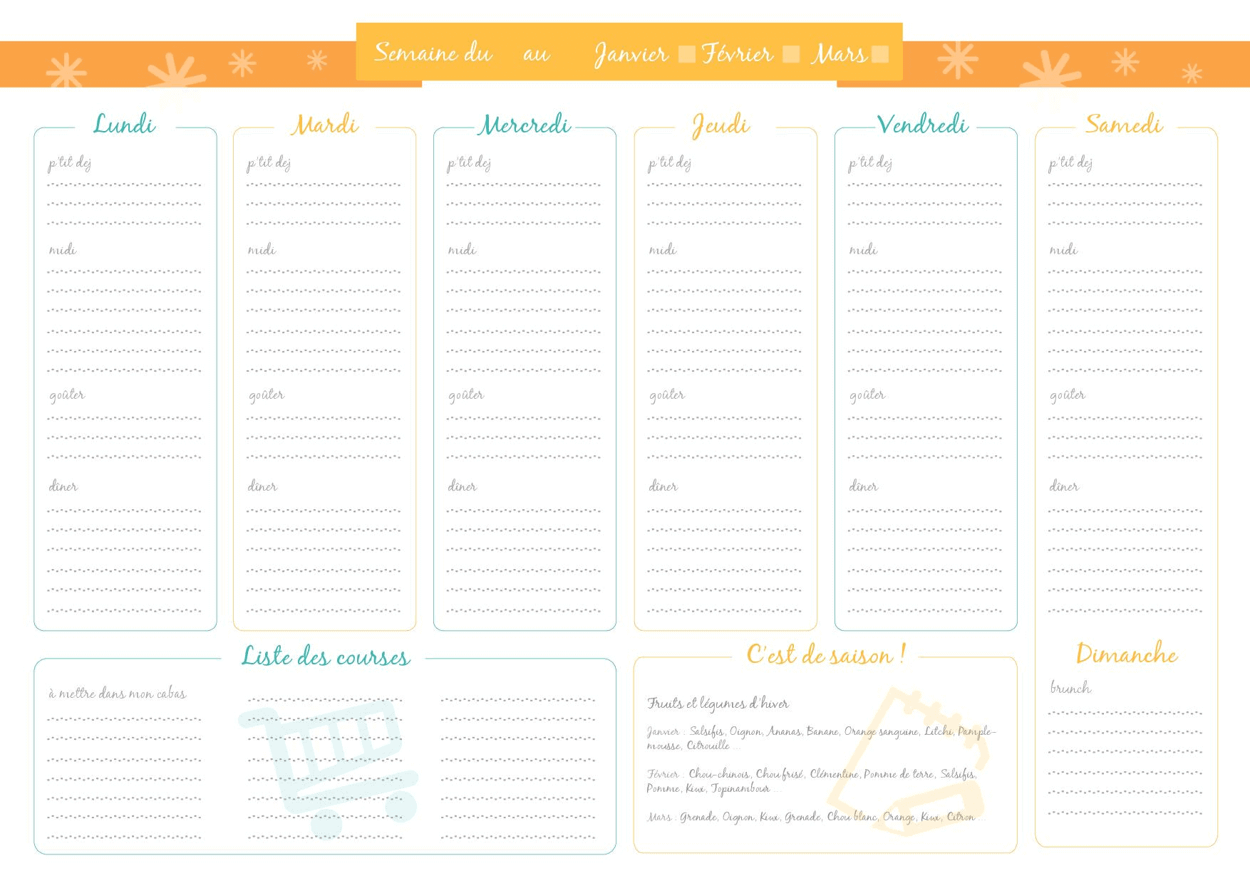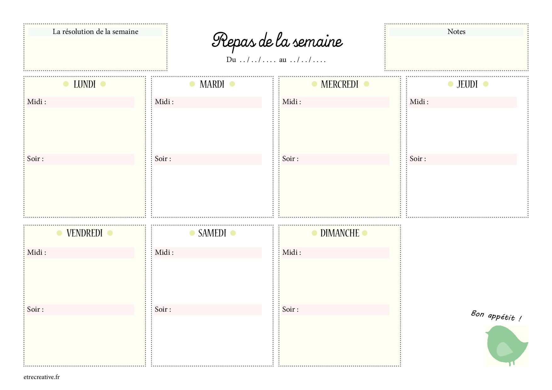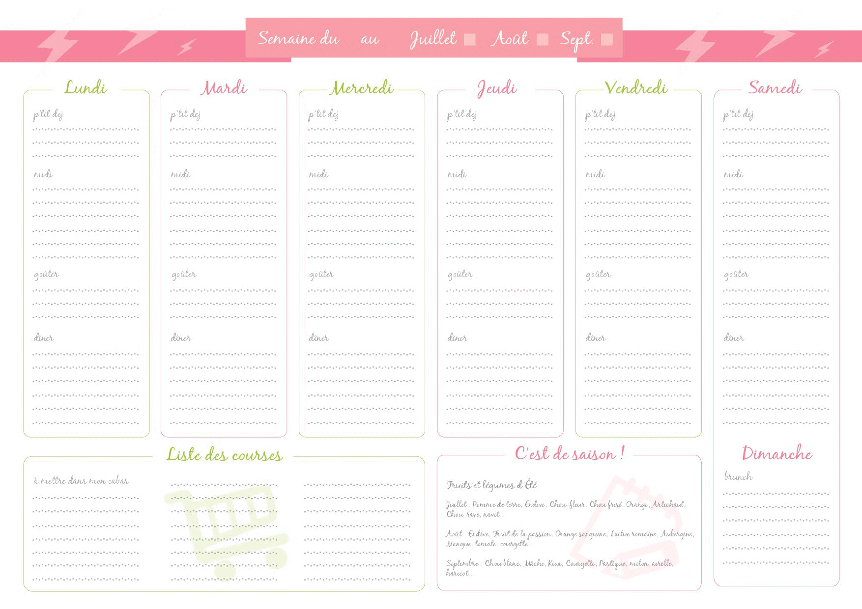 Ce planning quotidien pour l'organisation des repas hebdomadaires se veut léger et fonctionnel. Que demander de plus ;)