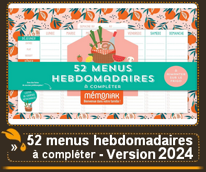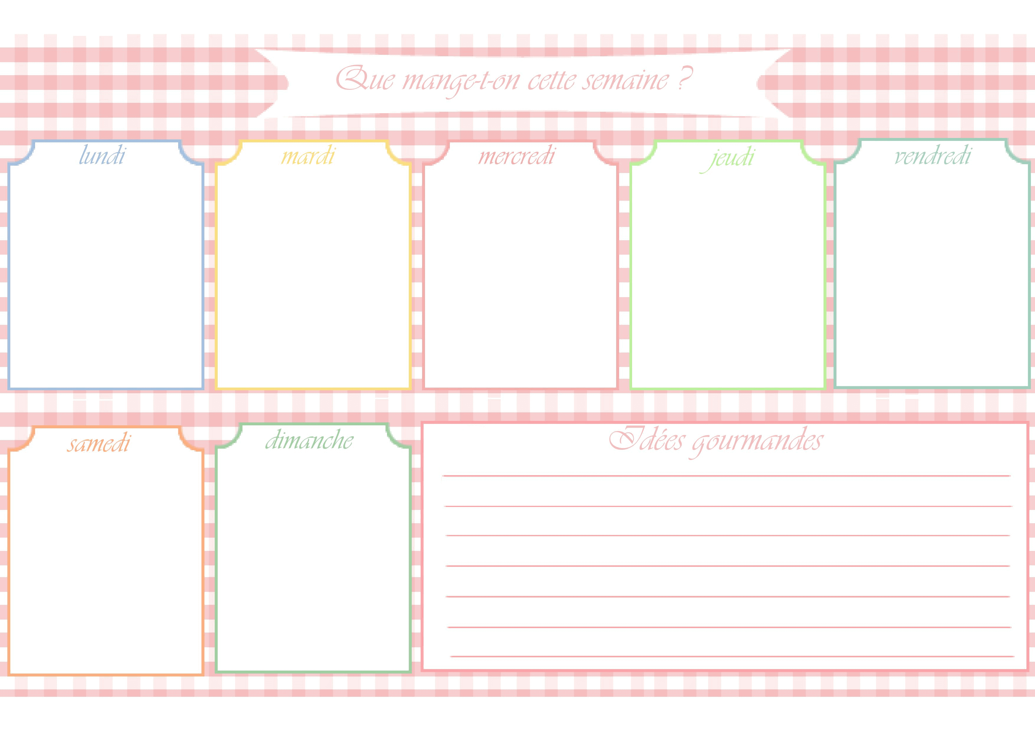 Ici, c'est un autre organisateur pour vos menus de la semaine à avoir toujours sous la main.