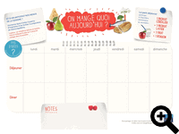 « ... retrouvez une liste pratique pour y noter vos achats et deux versions de calendrier pour y noter vos menus de la semaine ... »