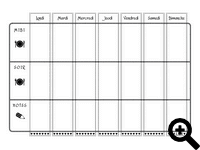 Sont incluses une case dîner et souper pour chaque jour de la semaine ainsi qu'une ligne en bas pour les goûters.