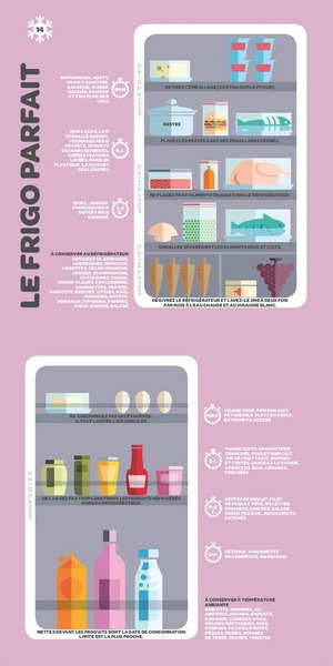 - Voir les autres infographies pour l'organisation et le rangement de son frigo