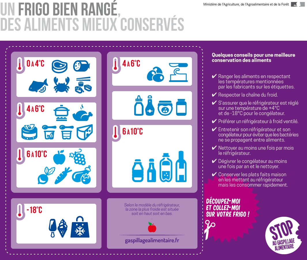 - Voir les autres infographies pour l'organisation et le rangement de son frigo