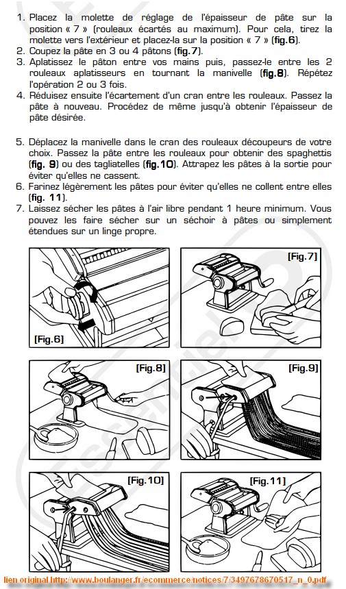 Réglez votre machine à l'aide du bouton de réglage de l'épaisseur du rouleau, de façon à ce que l'épaisseur soit la plus grande, fariner votre pâte et passez la telle quelle une première fois.