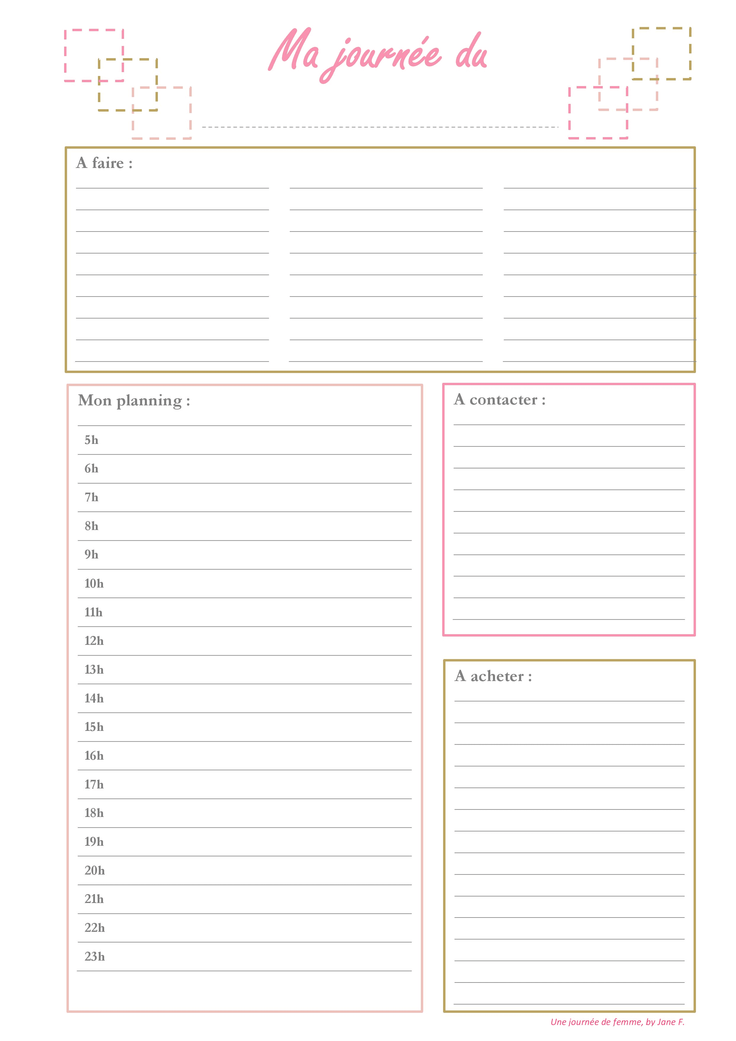 Jane F. de journee-femme.fr vous explique comment elle a organisé ses journées avec un planning journalier à imprimer qu'elle propose de télécharger gratuitement.