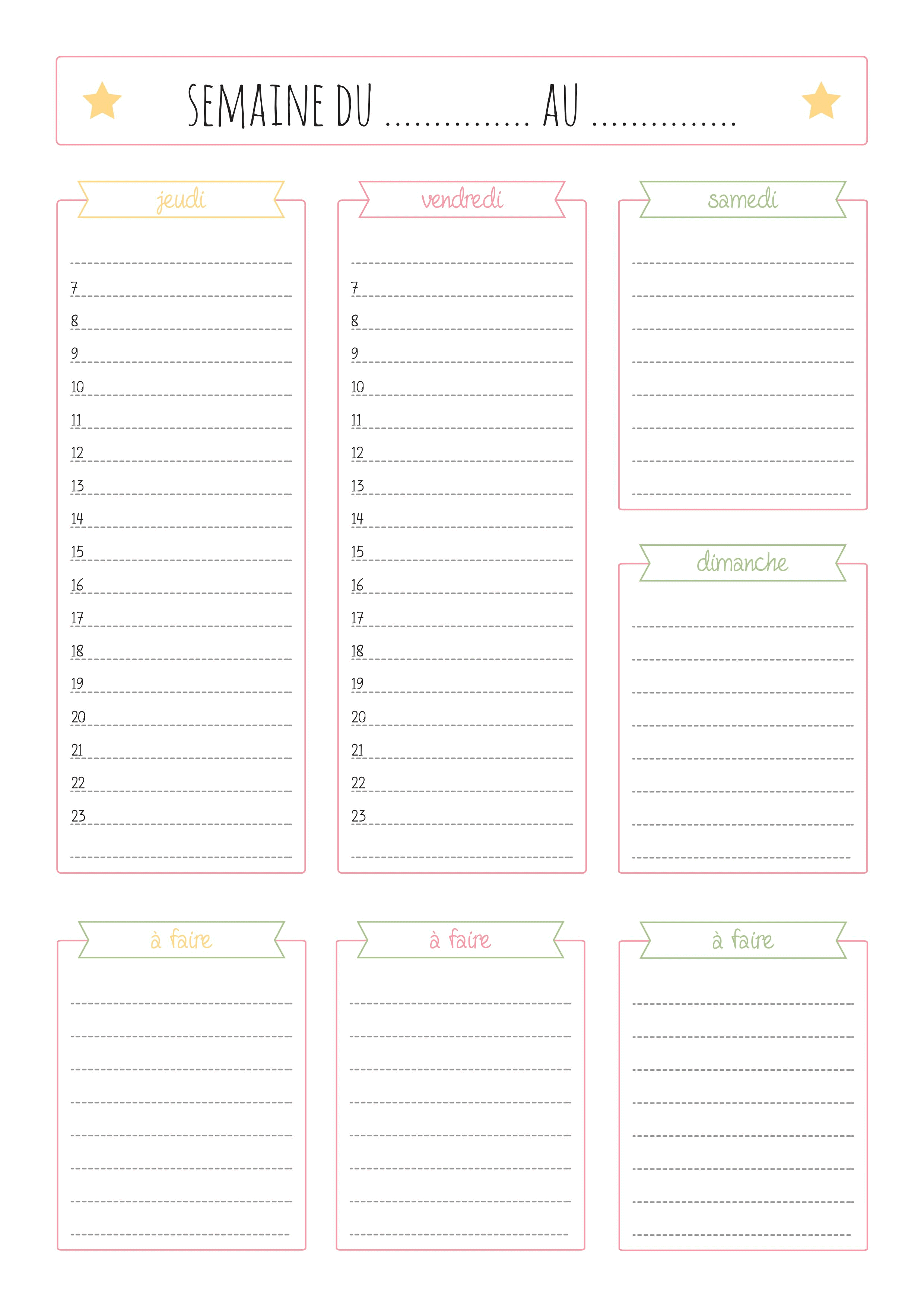 - Voici notre sélection de planning hebdomadaire à imprimer :