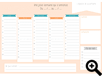 Celui-ci est composé d'une sorte de tableau avec des cases pour les jours de la semaine du lundi au dimanche. Une grande case en haut intitulée « À faire absolument » et une case supplémentaire en bas pour les « Notes ».