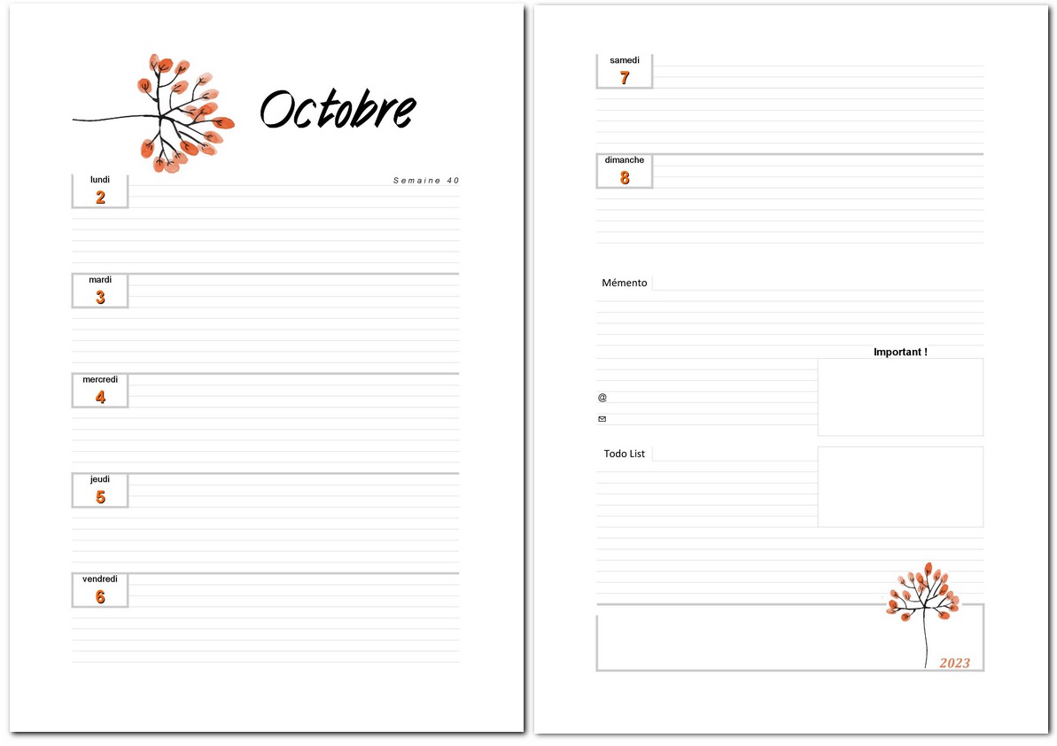 Visitez la page de l'auteur, intitulée « Pour votre organisation : le semainier ! »