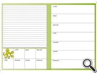 Celui-ci inclut des cases pour les jours de la semaine du lundi au vendredi, plus une case week-end. Pour les annotations, il dispose de cases pour ne rien oublier, à lire, à cuisiner et écouter, une liste de choses à faire et une longue case en bas "post-it".
