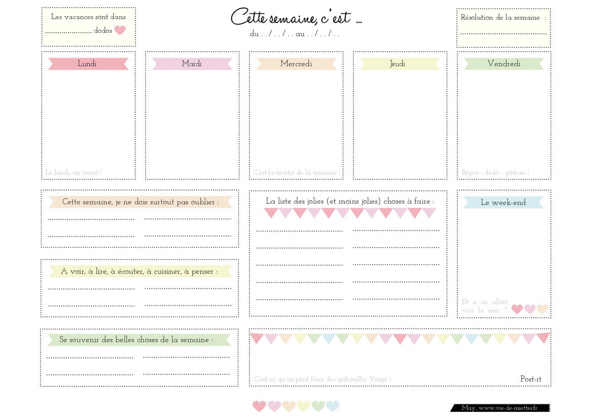Gérer son organisation pour la semaine, c'est bien, l'imprimer c'est mieux ^^