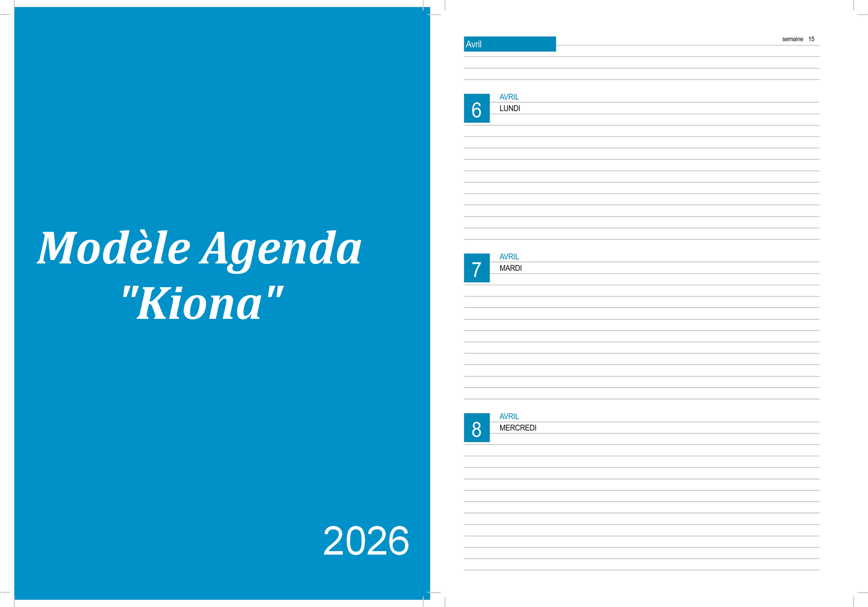 Retrouvez ci-dessous un aperçu de notre agenda hebdomadaire pour avril 2026 à imprimer :