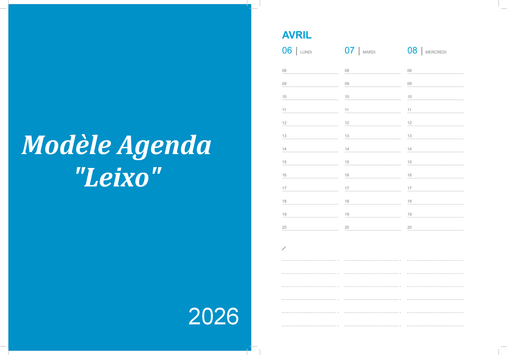 Retrouvez ci-dessous un aperçu des trois agendas hebdomadaires gratuits pour avril 2026 :