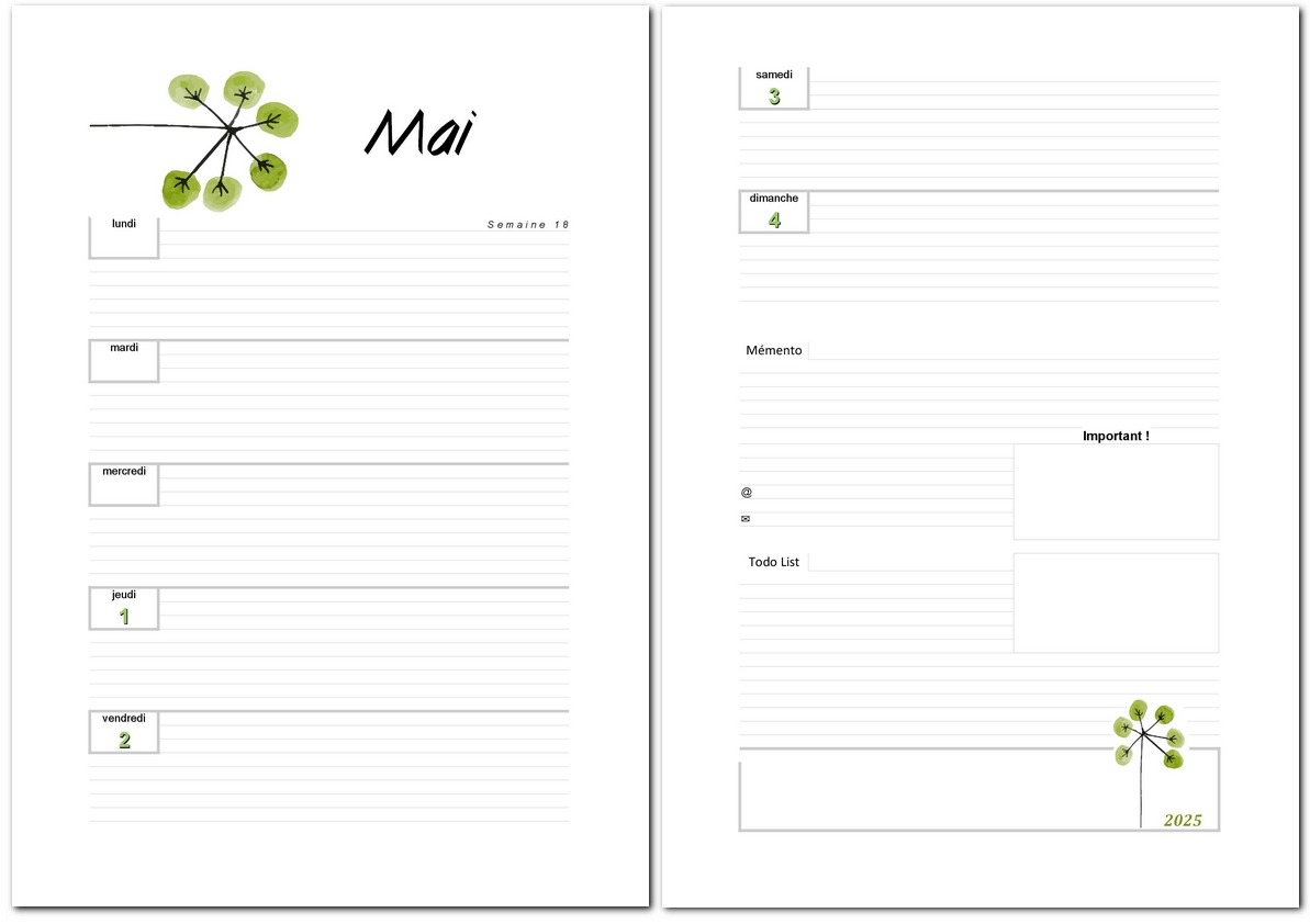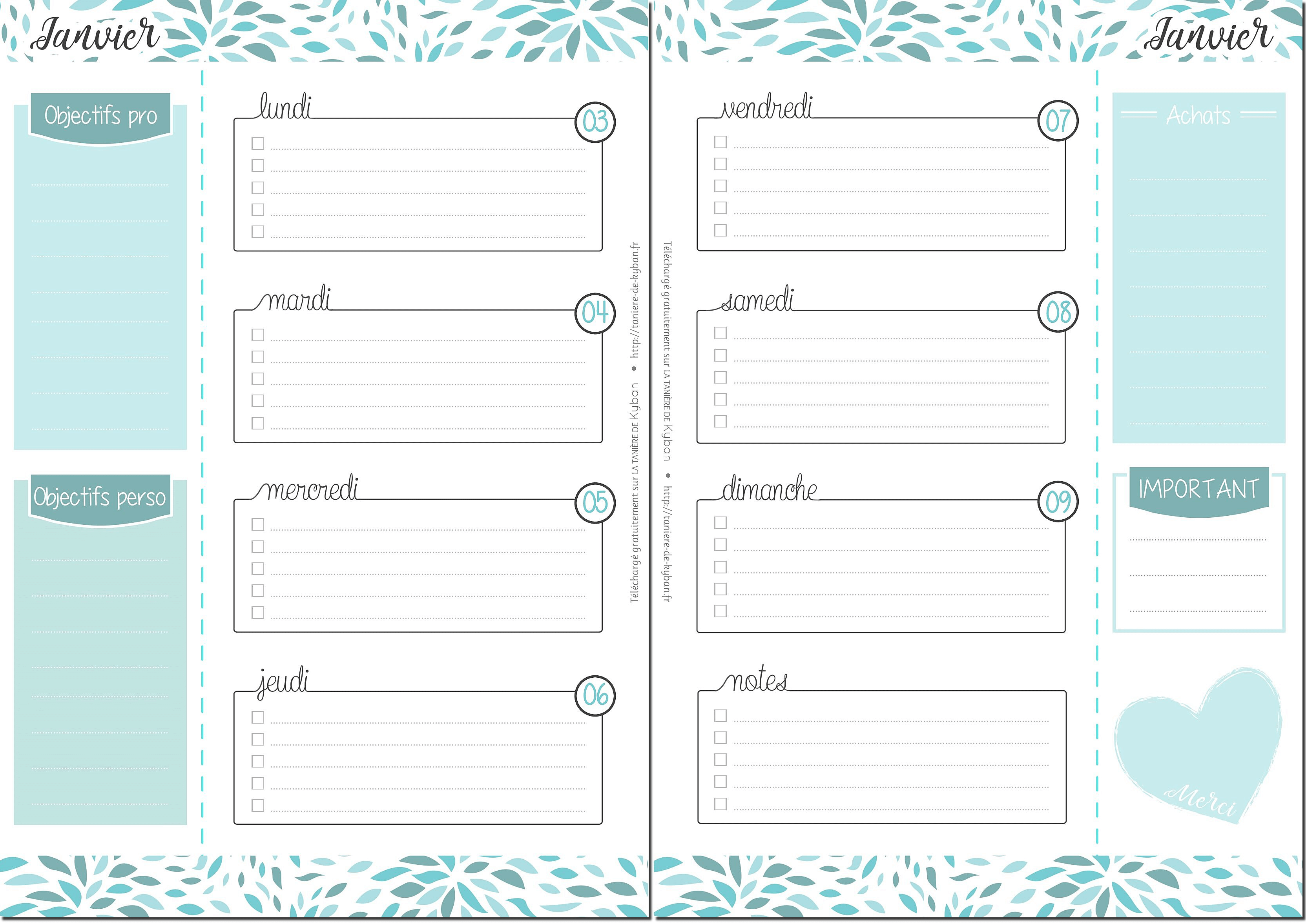 Modèles de planificateur de semaine gratuits à télécharger sous la forme d'agenda ou de semainier à imprimer au format PDF.