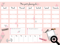 Elle se sert de ce planning pour noter ses menus pour la semaine, ses périodes de sport, mais aussi pour lister ses courses à prévoir. Il peut être pratique pour débuter la planification d'un menu de régime ^^.