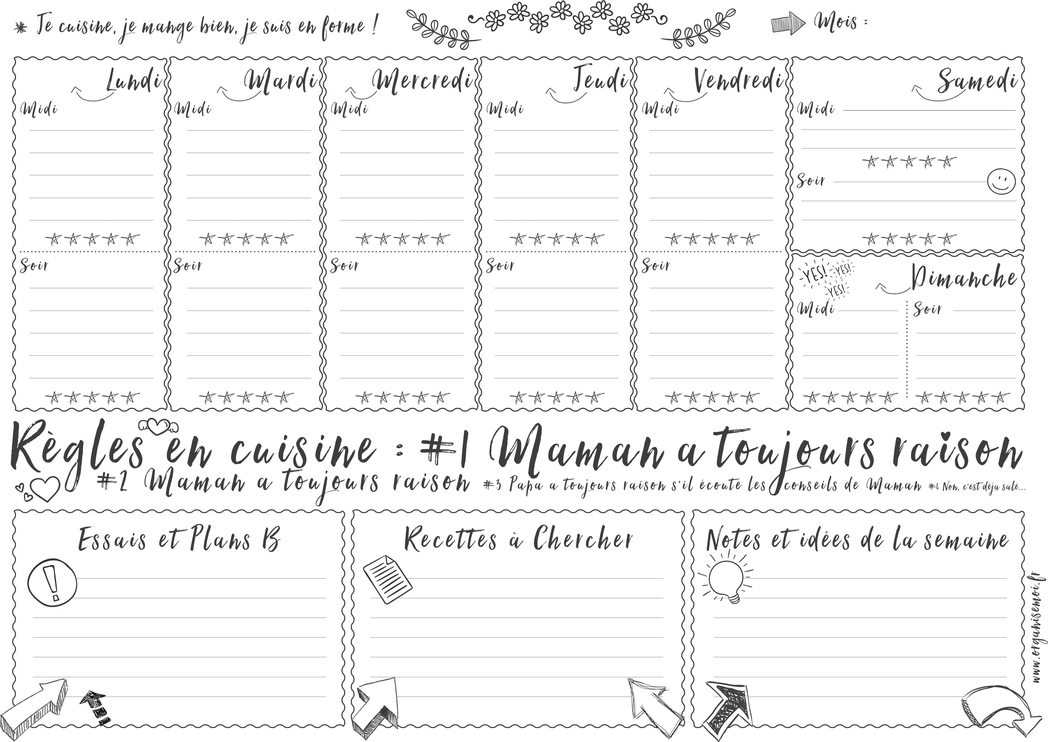 Planifier la semaine des repas c'est bien, l'imprimer c'est mieux ^^