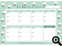 Pour chaque jour, vous avez une ligne pour le repas du matin, du midi et du soir. Le tout se veut simple, mais fonctionnel et donnera une touche de couleur sur votre frigo avec ses petits nuages ^^).
