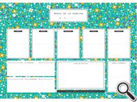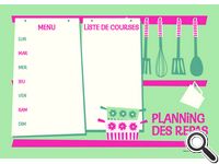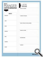 Il est agréable à l'oeil, avec deux parties distinctes : une, du côté gauche pour noter vos menus, du dimanche au samedi et dans la partie droite, une liste d'épicerie découpable, dans laquelle figure une case fruits et légumes, une case viandes et poissons, produits laitiers, etc.