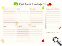 Le site ricardocuisine.com propose un petit planning hebdomadaire pour menus, intitulé " Quoi manger cette semaine " imprimable en mode portrait ou verticalement si vous préférez ^^.