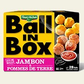 - Ball in Box | Snacks Chauds Fleury Michon. Cette idée de petites boulettes à base de pomme de terre, aux quel on ajoute un ingrédient comme du jambon, du poulet ou du boeuf, le tout avec une petite sauce froide n'est pas bête du tout, à tester donc pour une portion déjeunée ;) voir également les "Vraiment Box"