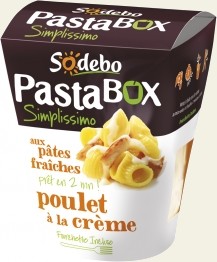 - Les repas en box Sodebo : asian Box, Pasta Box et Xtrem Box (pâtes en boîte). Sur la page en question et pour chaque " Pasta Box " les ingrédients sont fournis, donc pourquoi ne pas vous en servir pour créer la vôtre ;)