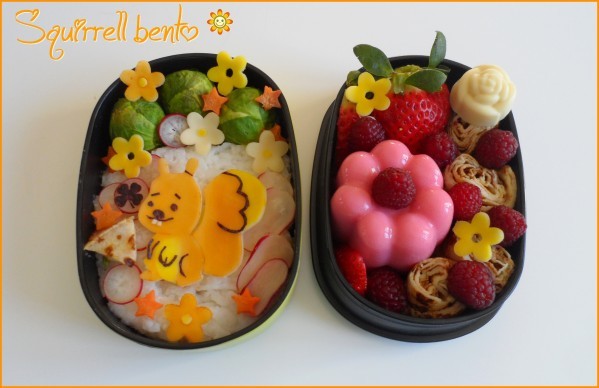À découvrir, le carnet de recettes de bento végétarien d'Aurélie qui comme le nom du site l'indique « Mon Bento Végétarien | Un site avec des bentos mais pas que ». Dans le même style que ceux de July ci-dessus, découvrez sa créativité ;).